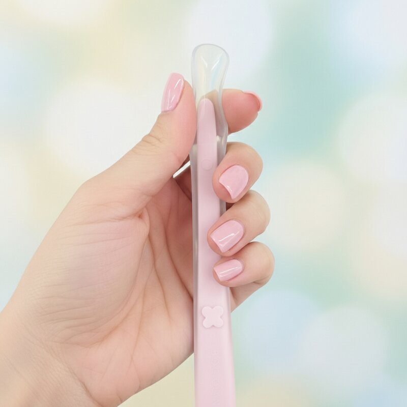 ✔️ Designul ergonomic al linguritei, cu o lungime de 15,5 cm, ofera o manevrabilitate usoara pentru parinti si copii.
