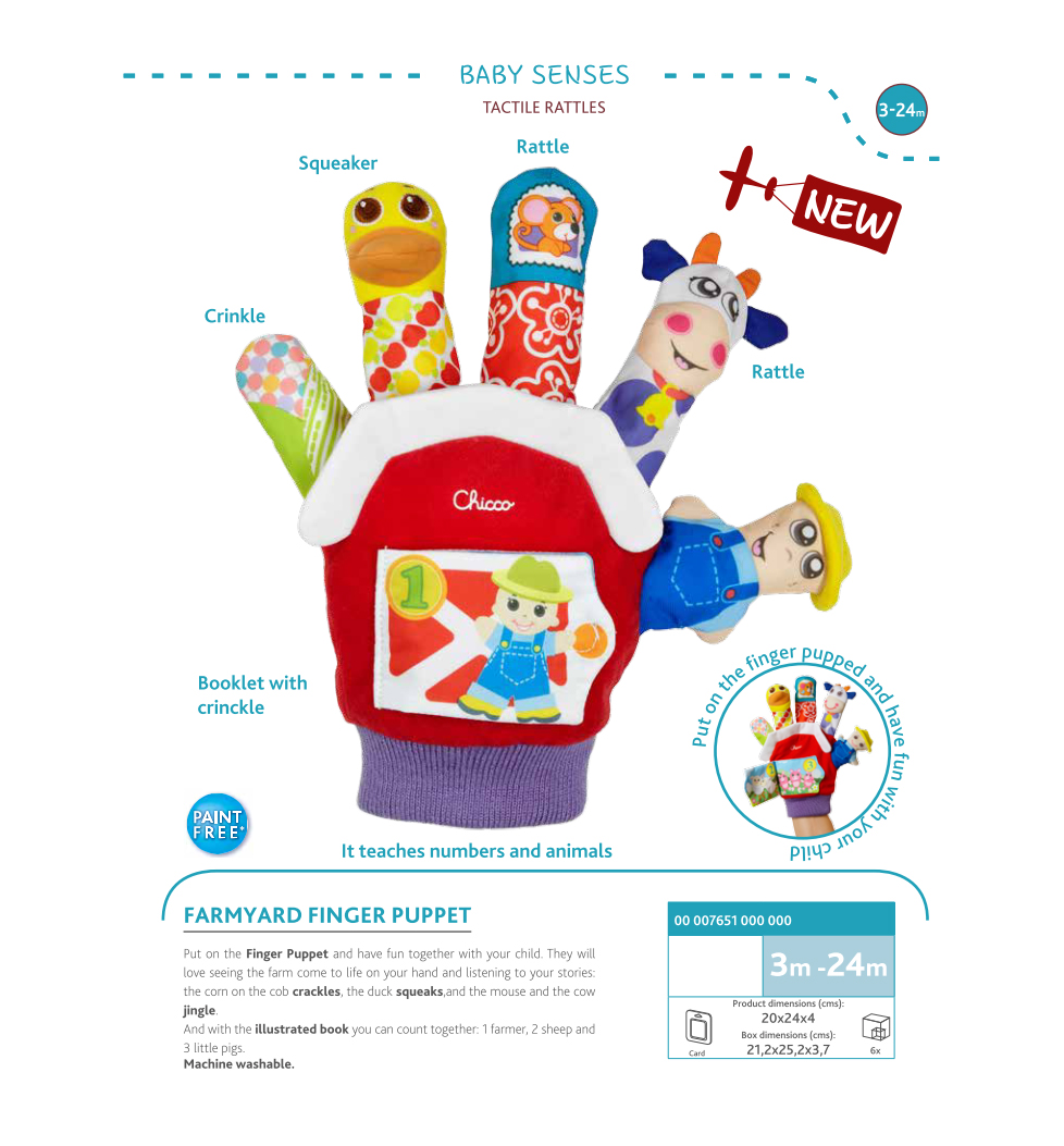 • Manusa Chicco cu marionete Ferma de animale, 3-24luni CHC07651-1