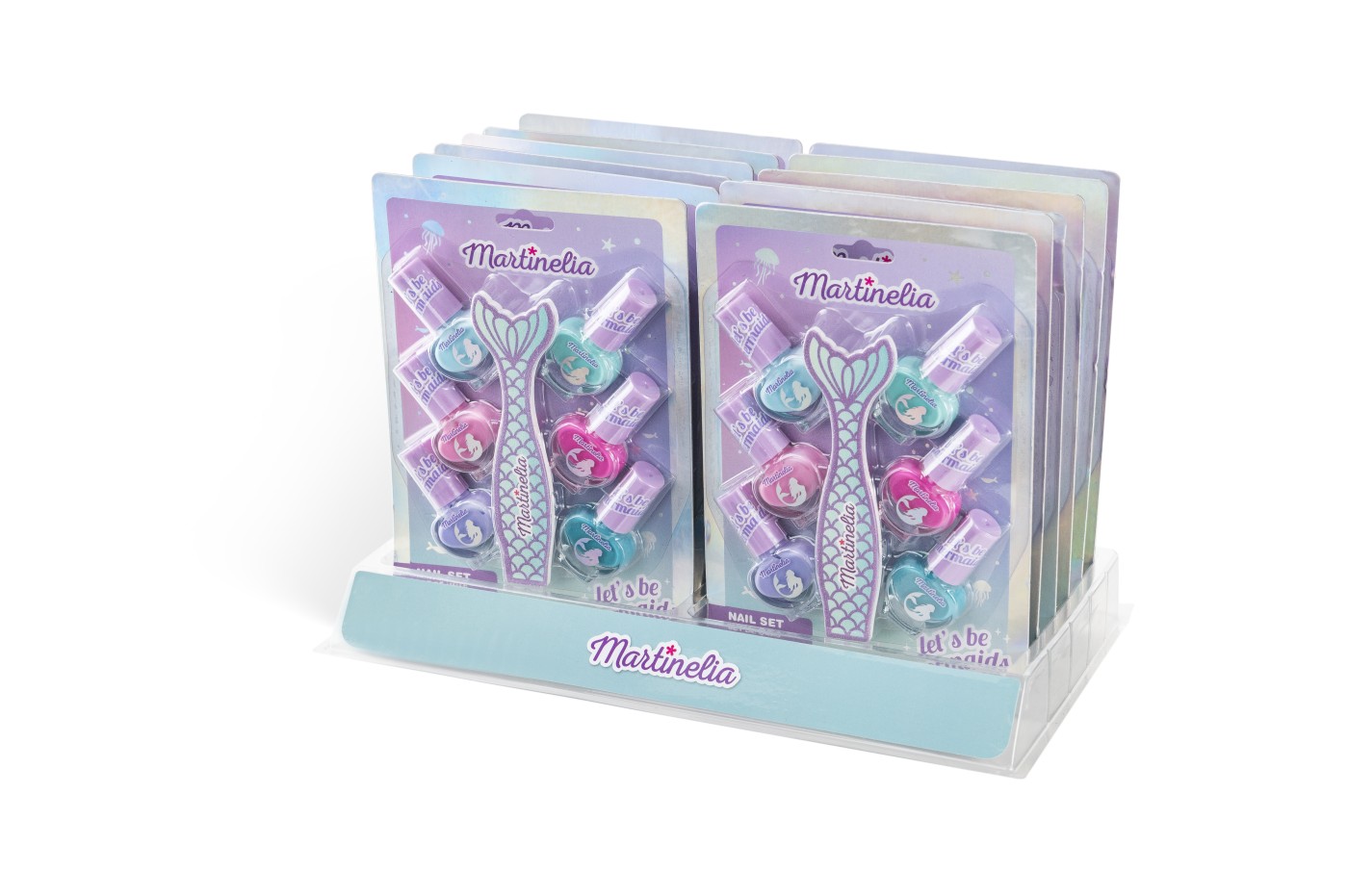 Set complet pentru unghii. Setul contine 6 lacuri de unghii pe baza de apa si o pila. Ingrediente Oja Apa, Copolimeri Stiren/Acrilati, Acid Poliacrilic, Propilen Glicol, Silice, Fenoxietanol, Parfum , D-Limonen, Linalool, Citronelol. Poate Contine Ci 15850. Coloranti Ci 77891, Ci 77742, Ci 42090, Ci 191401, Ci 454102, Ci 158501, Ci 77266. Martinelia este un brand care face parte din grupul Aquarius Cosmetic SL , principalul distribuitor de parfumuri si cosmetice in Spania inca din anul 1995. in ziua de astazi, brandul se gaseste in toata lumea, nu doar in Spania. Produsele brandului la Martinelia pot fi recunoscute cu usurinta datorita ambalajului unic si jucaus. in oferta brandului Martinelia veti gasi seturi de cadouri, accesorii pentru par, popularele balsamuri de buze aromate si alte accesorii care vin in ambalaje haioase. Copiii vor fi incantati de produse precum setul decorativ in forma de ursulet, peria de par unicorn sau periuta de dinti cu sirene. Martinelia ofera pentru cei mici o gama larga de produse distractive si inovatoare in toate culorile curcubeului. Seturi de machiaj, rujuri si tot felul de produse si accesorii concepute pentru a tine pasul cu ultimele tendinte. Produsele sunt sigure si prietenoase cu mediul fiind special proiectate pentru a putea fi folosite de copii.