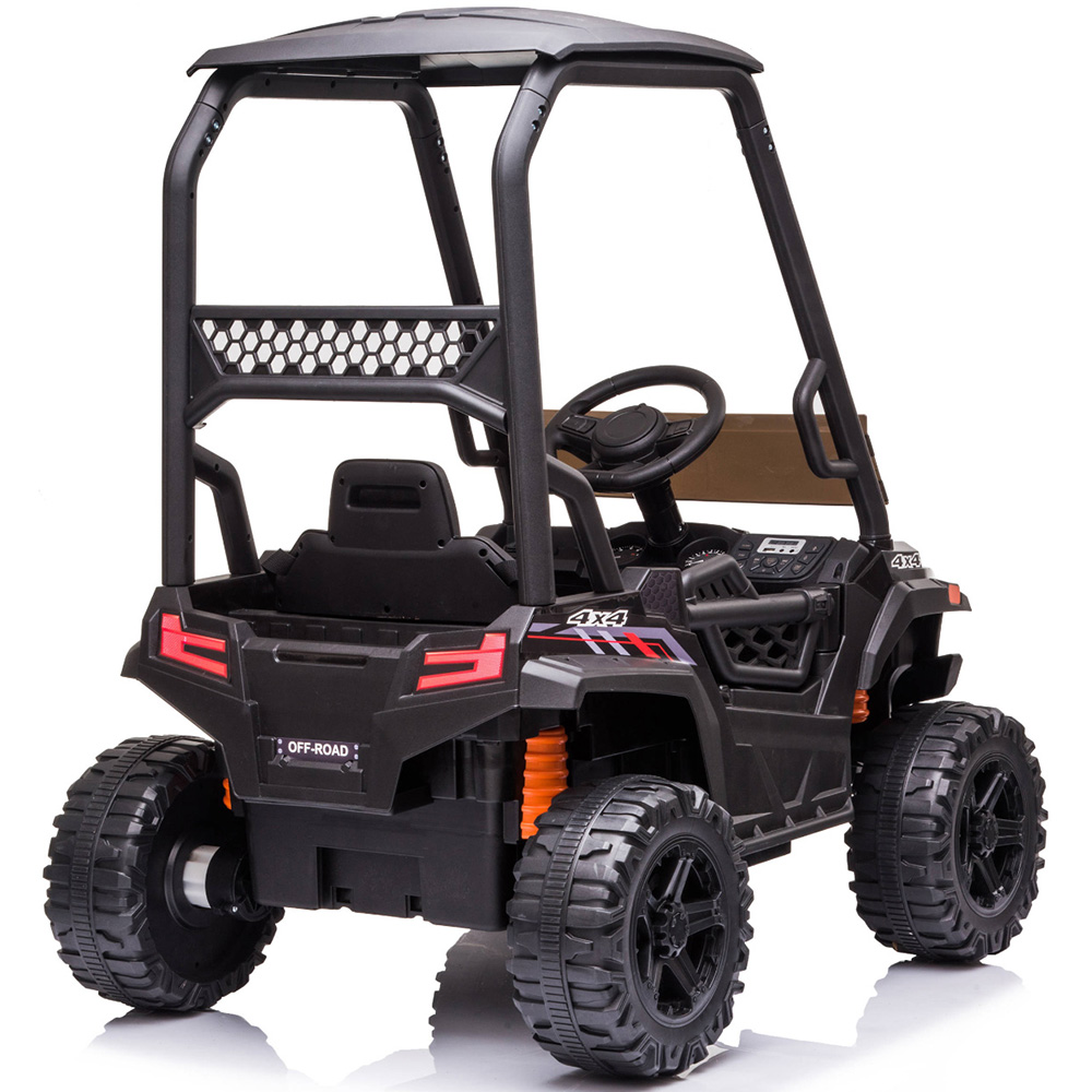 - Masinuta poate fi utilizata prin 2 moduri de control: de la distanta, in cazul in care parintele poate controla masinuta cu ajutorul telecomenzii cu 4 functii (inainte, inapoi, stanga, dreapta) sau manual, cand copilul conduce singur cu ajutorul pedalei de acceleratie si al volanului
