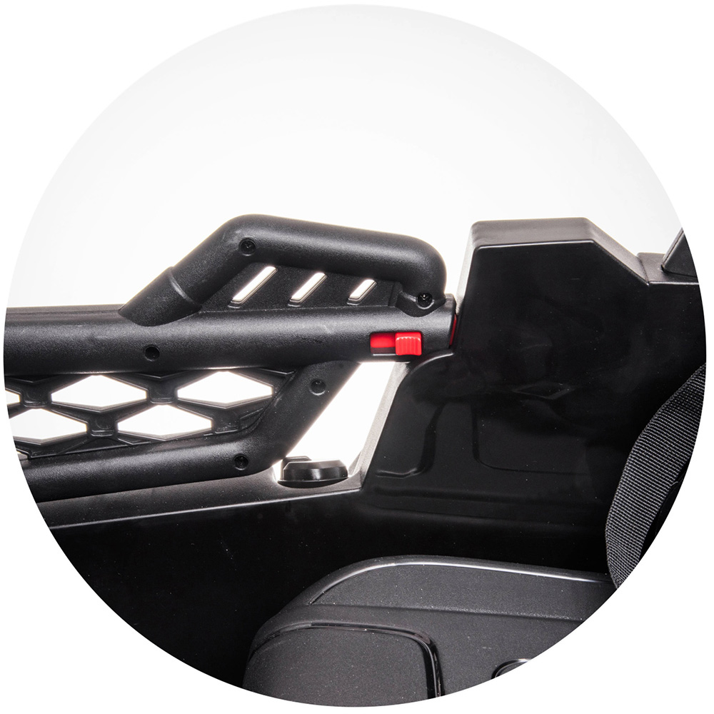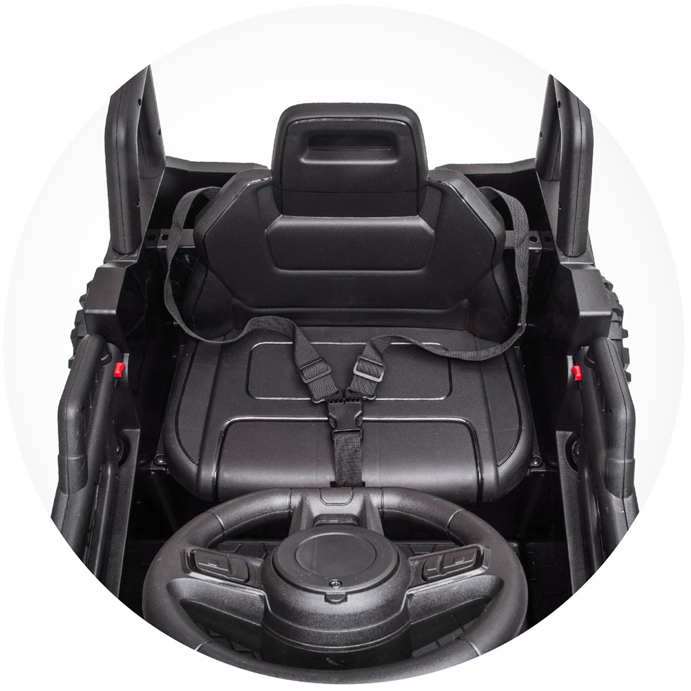 - Bancheta masinutei dispune si de centuri de siguranta oferindu-i celui mic tot confortul de care are nevoie pentru o plimbare in siguranta