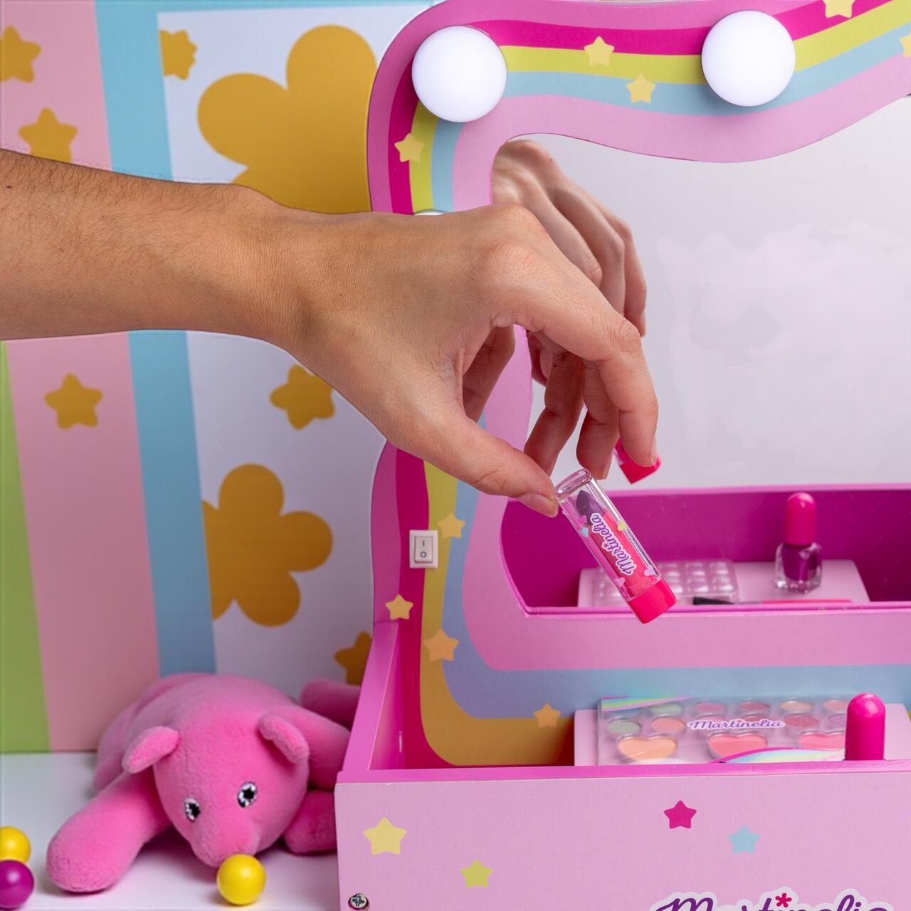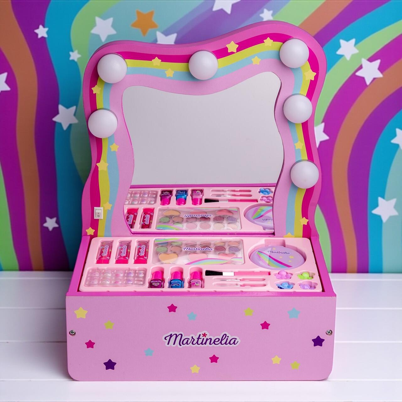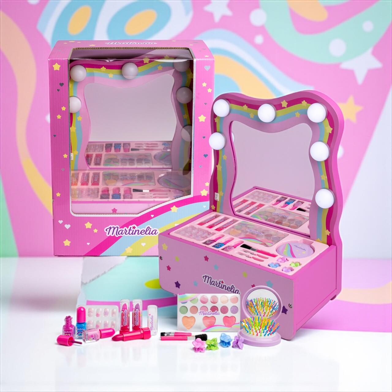 ???? Măsuța de machiaj Martinelia este locul unde magia, culoarea și imaginația se întâlnesc! Concepută special pentru micile vedete care adoră să se joace de-a frumusețea, această măsuță cu oglindă iluminată oferă o experiență completă de joacă și creativitate. Cu lumini inspirate din adevăratele platouri de filmare și o varietate de produse sigure pentru pielea delicată a copiilor, fiecare moment petrecut în fața oglinzii devine o poveste strălucitoare.