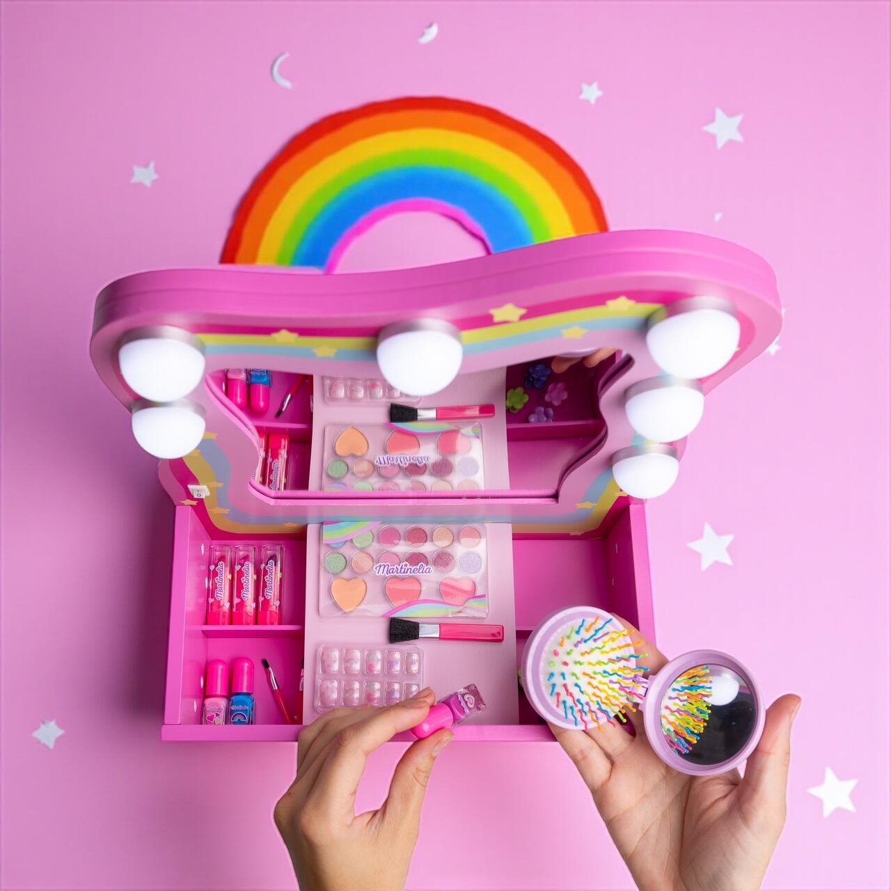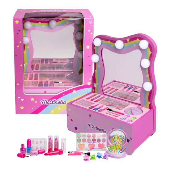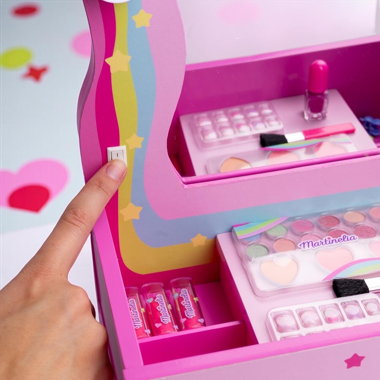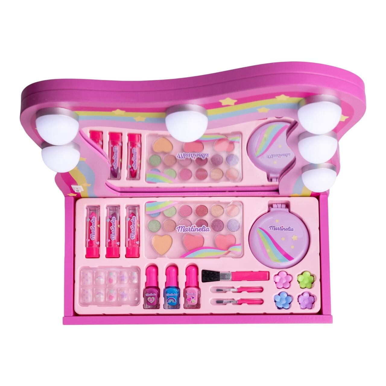 ???? Măsuța de machiaj Martinelia este locul unde magia, culoarea și imaginația se întâlnesc! Concepută special pentru micile vedete care adoră să se joace de-a frumusețea, această măsuță cu oglindă iluminată oferă o experiență completă de joacă și creativitate. Cu lumini inspirate din adevăratele platouri de filmare și o varietate de produse sigure pentru pielea delicată a copiilor, fiecare moment petrecut în fața oglinzii devine o poveste strălucitoare.
