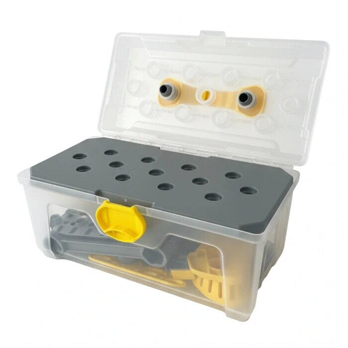 - Uneltele sunt depozitate intr-o trusa practica, usor de transportat si de organizat, care ii ajuta pe copii sa invete ordinea si responsabilitatea dupa finalizarea jocului