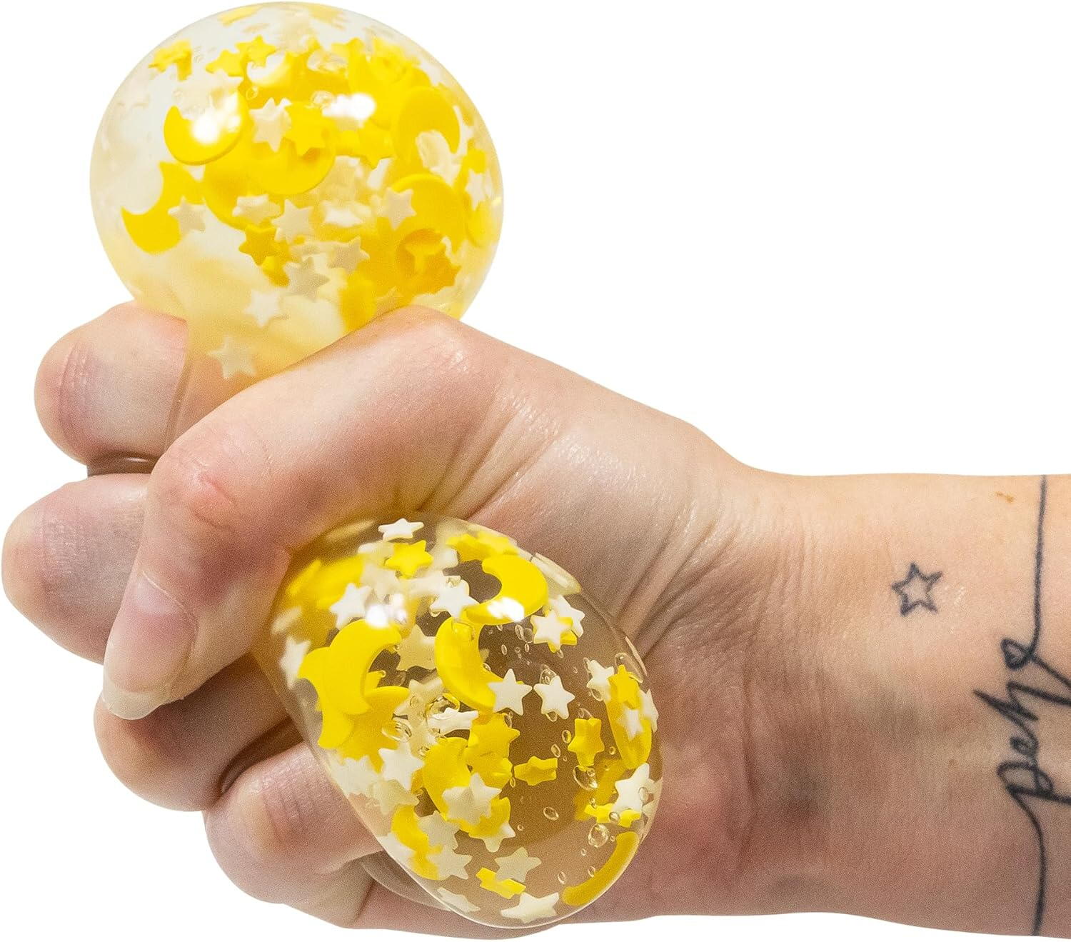 Minge antistres cu design inedit, in forma de luna cu stele, ideala pentru relaxare, joaca senzoriala si calmare. Este moale, elastica si fosforescenta – lumineaza in intuneric dupa ce a fost expusa la lumina.