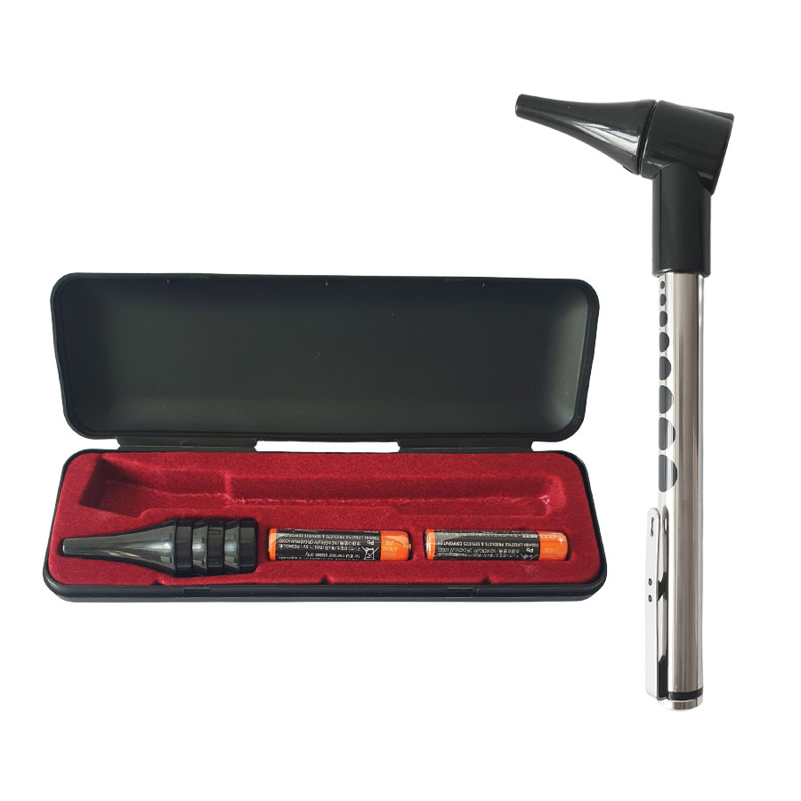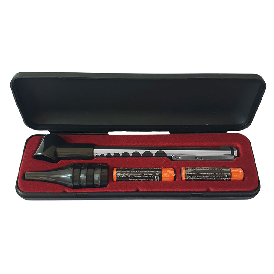 Mini otoscop portabil cu lanterna GIMA 31300, 3 speculi auriculari, Arginiu Caracteristici: - Design deosebit sub forma de stilou; - Iluminare cu LED; - 3 specuri auriculari reutilizabili; - 3 dimensiuni diferite de speculi auriculari: 2.5 mm, 3.5 mm, 4.5 mm; - Cutie eleganta din plastic pentru depozitare. Mini otoscopul portabil cu lanterna GIMA este un instrument folosit pentru examinarea urechii si detectarea problemelor cum ar fi: otita externa, acumularea de ceara sau otita medie. Acesta este echipat cu 3 speculi auriculari de dimensiuni diferite si lanterna cu lumina LED, alba. De asemenea, pe suprafata mini otoscopului se regaseste o banda de masurat, in mm. Mini otoscopul portabil GIMA este un instrument cu doua functii: 1. Lanterna; 2. Mini otoscop, dupa ce ii atasati unul dintre cei 3 speculi auriculari. Pachetul contine: - Mini otoscop model GIMA - Cutie eleganta din plastic - Set 3 speculi auriculari - 2 baterii AAA,15 x 1.5 x 2 cm