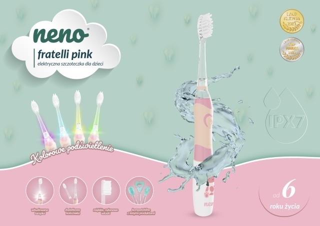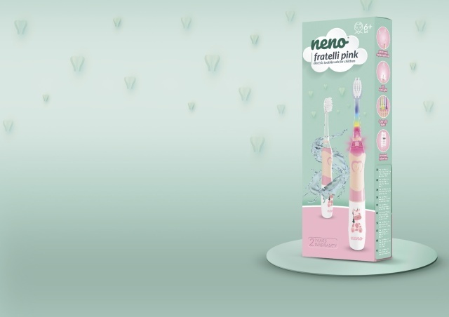Neno Fratelli este o periuță de dinți electrică creată special pentru copiii mai mari (de la 6 ani în sus). Echipată cu temporizator, peri din nylon și 24.000 de vibrații pe minut, Neno Fratelli asigură o igienă orală corespunzătoare. În plus, datorită funcțiilor inovatoare, precum iluminarea LED și LED-urile colorate, periajul zilnic al dinților devine o aventură captivantă pentru cei mici.