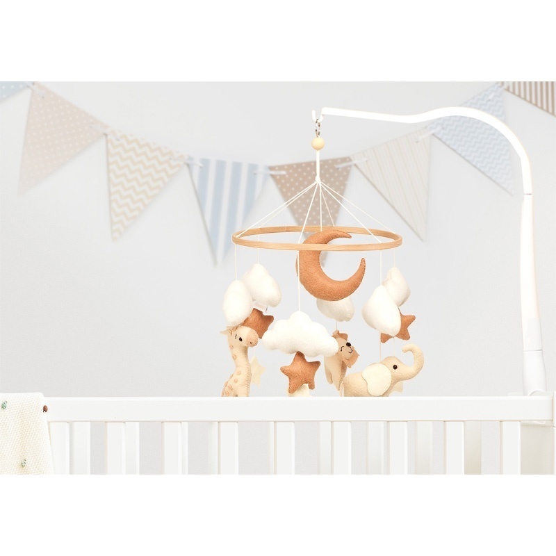 Mascotele în formă de animalute, stelute si luna sunt cusute manual din fetru delicat și umplutură moale. Aspectul lor plăcut și mișcarea subtilă de legănare creează o senzație de liniște și siguranță, ideală pentru momentele de relaxare și somn.