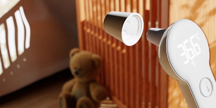 Sistem Inteligent 2 în 1 (Frunte & Ureche): Trecerea de la măsurarea pe frunte la cea în ureche se face intuitiv. Pur și simplu scoateți capacul magnetic, iar termometrul își schimbă automat modul de funcționare.