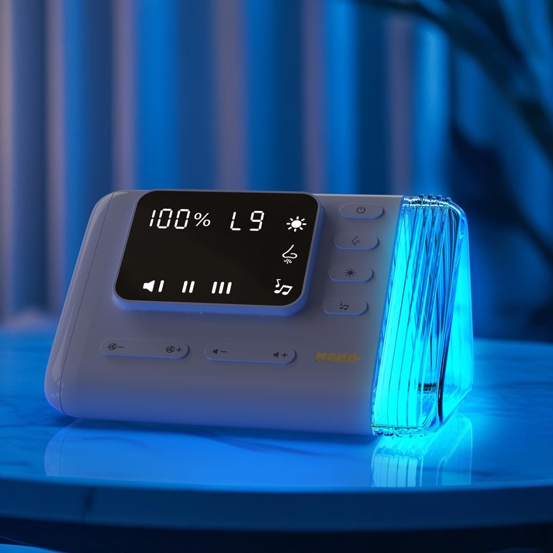 Sunete liniștitoare: Melodii plăcute și sunete alb (white noise) care ajută la calmarea copilului în timpul utilizării.