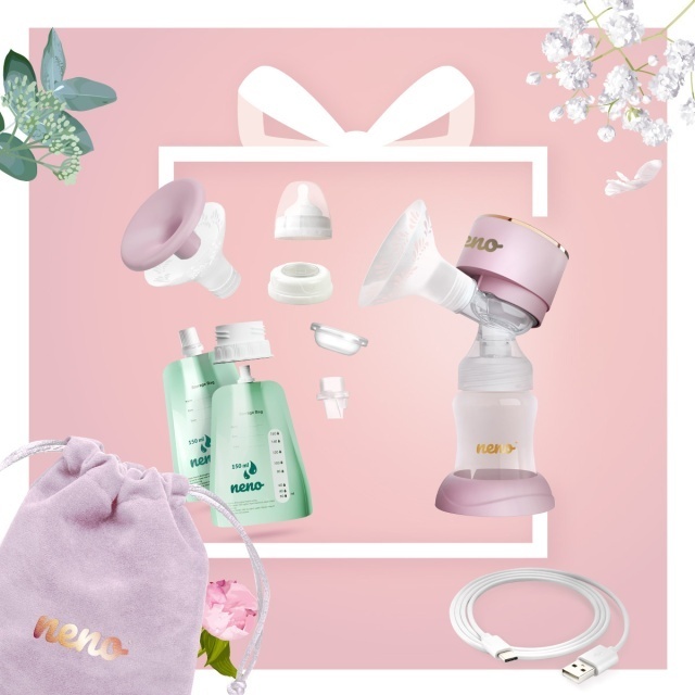 În setul pompei de sân Neno Perfetto primești un biberon rezistent la zgârieturi, împreună cu suport, tetină și capac, un săculeț de catifea pentru depozitare, două pâlnii în mărimi diferite: SLIM 21 mm și MEDIUM 24 mm, precum și două punguțe practice pentru stocarea laptelui, împreună cu un conector. Aceste punguțe pot fi achiziționate și separat, în seturi de câte 20 de bucăți. Datorită acestui sistem inteligent, poți extrage laptele direct în pungă, pentru a-l congela cu ușurință.