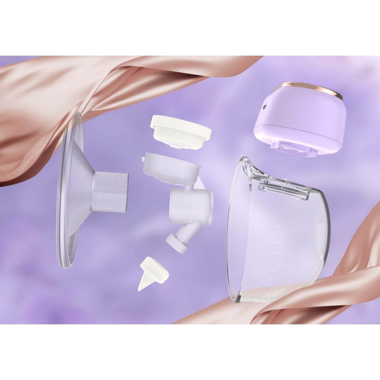 Dispozitivul este format dintr-o unitate de pompare compactă cu panou tactil intuitiv și un recipient transparent pentru colectarea laptelui, cu o capacitate generoasă de până la 210 ml.