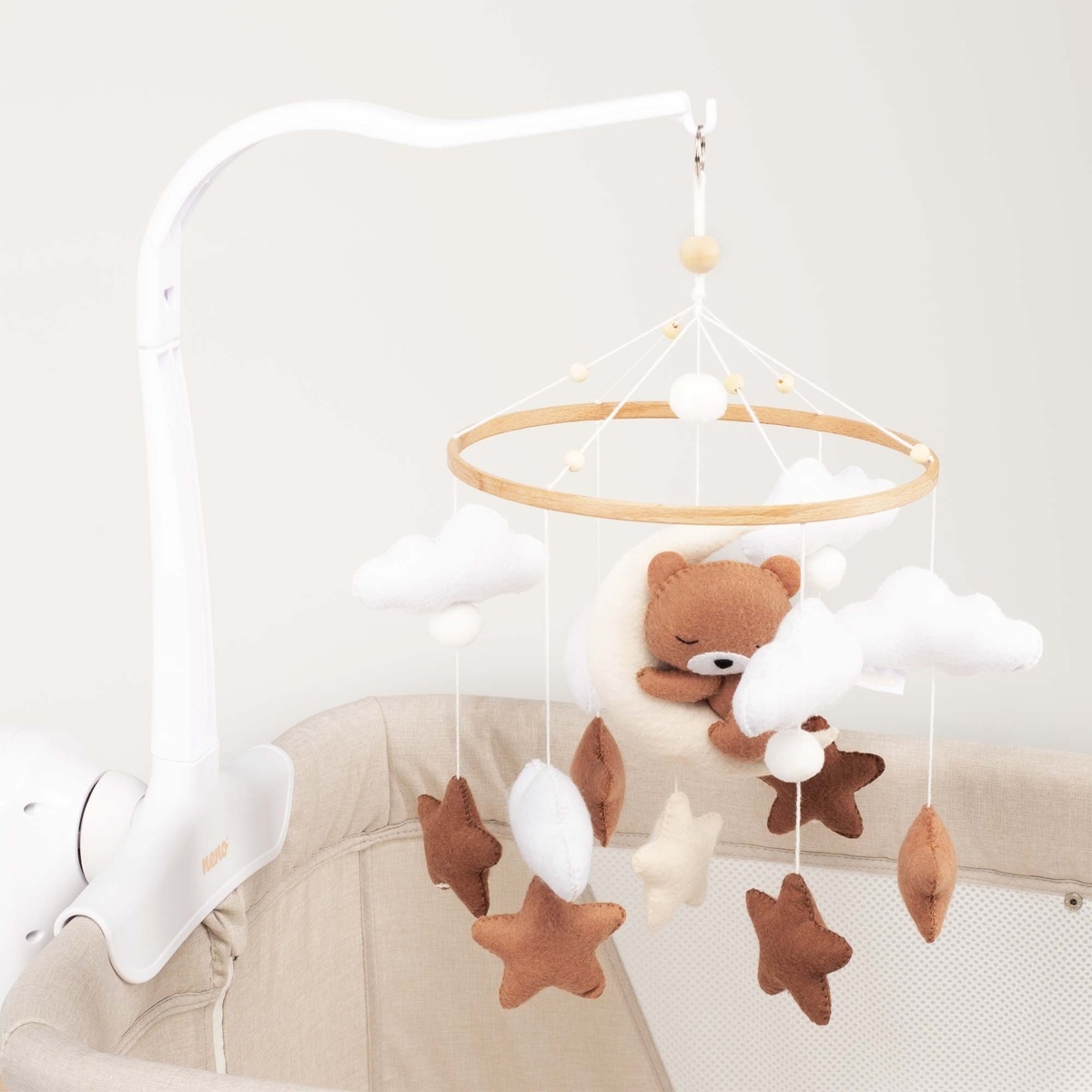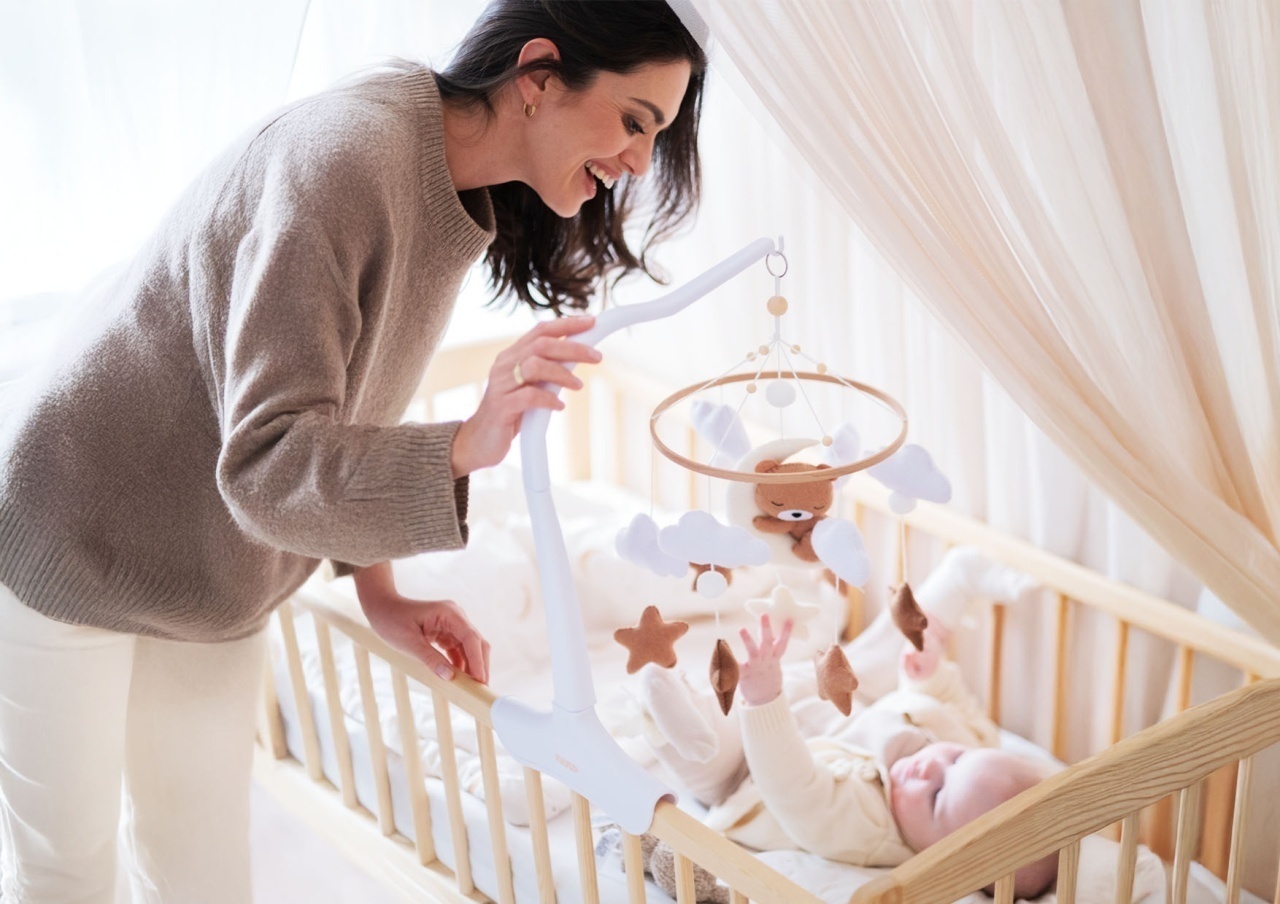 Montaj ușor și stabil: Suportul de prindere se fixează rapid și sigur pe pătuț, fără necesitatea uneltelor.