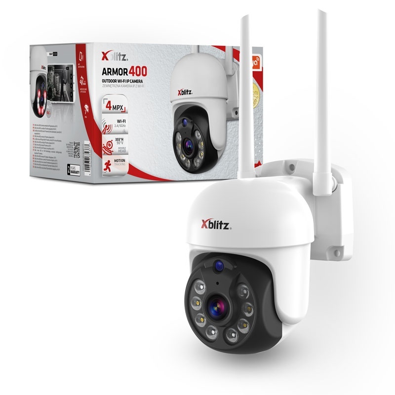 Xblitz Armor 400 este o cameră de supraveghere modernă pentru exterior, proiectată pentru a oferi siguranță avansată, control inteligent și imagini de înaltă calitate în orice condiții. Cu o rezoluție 4 MPX, funcție de urmărire automată a persoanelor (AI Human Tracking) și vizibilitate color pe timp de noapte, această cameră este ideală pentru locuințe, birouri, spații comerciale sau case de vacanță.