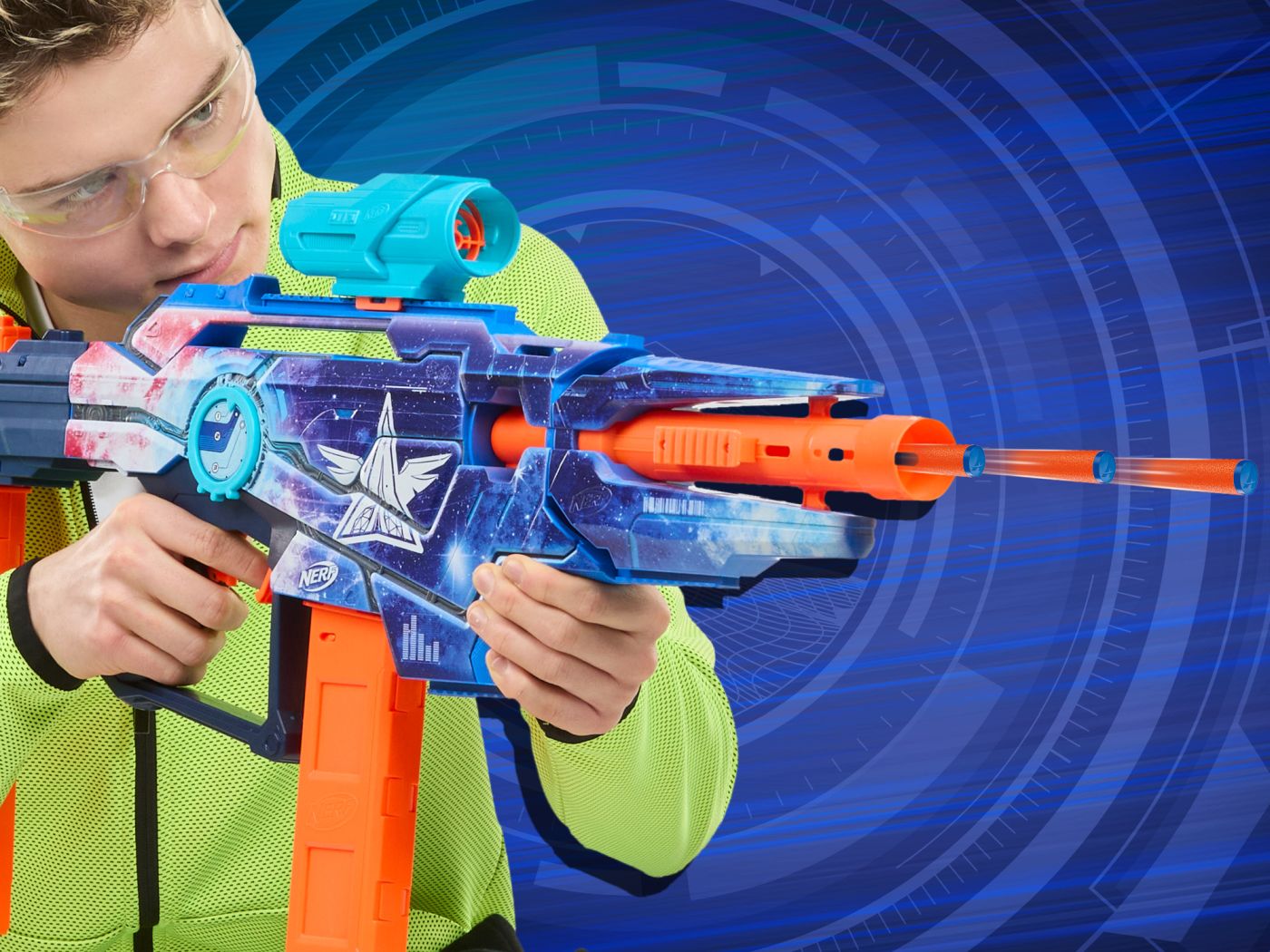 Da viata jocurilor video si personalizeaza-ti pistolul suprem! Pistolul Nerf Loadout Galactic Commander dispune de trei moduri de tragere semiautomat, rafala cu 3 sageti si complet automat. Pachetul include o luneta, un stoc de incarcator si un accesoriu de teava, toate interschimbabile cu alte pistole Loadout, plus doua incarcatoare cu 18 sageti. Echipat cu legendarul skin Galactic Commander, acest pistol iti va supraalimenta bataliile spatiale epice. Pistolul Nerf Loadout Galactic Commander vine cu 48 de sageti Nerf N1 conceput pentru precizie, viteza si distanta extrema. Construieste-ti stocul de pistole Nerf Loadout pentru optiuni de personalizare nelimitate (fiecare se vinde separat, in functie de disponibilitate). Sagetile Nerf N1 sunt compatibile numai cu pistolele de sageti Nerf N1. Se recomanda ochelarii de protectie (nu sunt incluse).