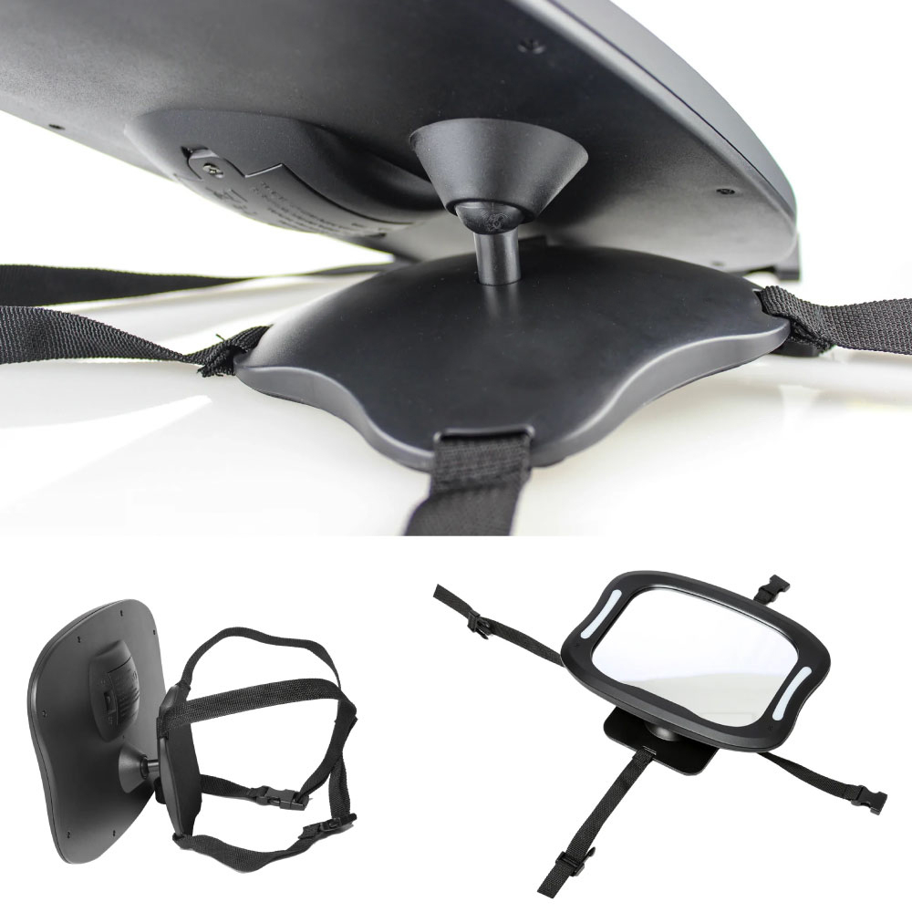 Oglinda retrovizoare cu Lumina LED Ezimoov este o oglinda auto mare, poate fi atasata pe tetiera banchetei din spate a masinii si este ideala pentru scaunele auto orientate spre spate. Oglinda Ezimoov permite o vedere completa a copilului asezat in scaunul auto, fara sa fie nevoie sa va intoarceti.