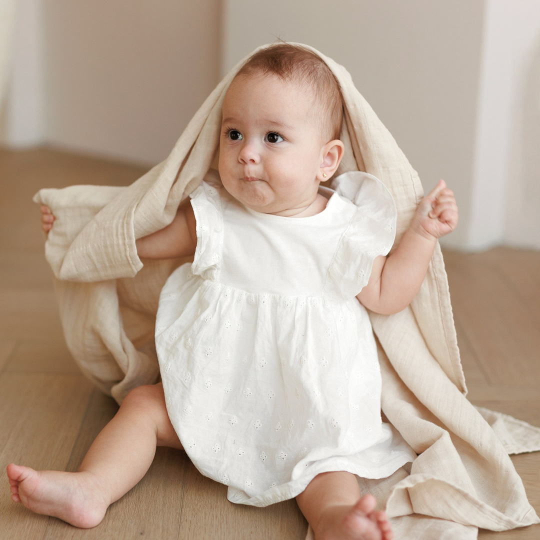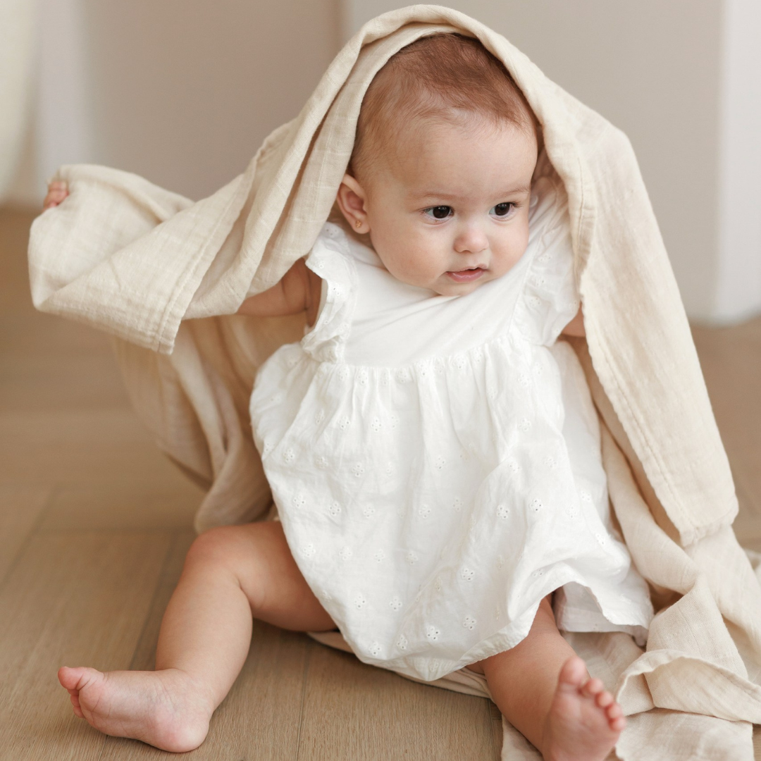 • Onino - muselina multifunctionala din bumbac 100% organic, hug.me, creamy vanilla, x1 bucata, 120 x 120 cm, certificata gots bbbcdsw003