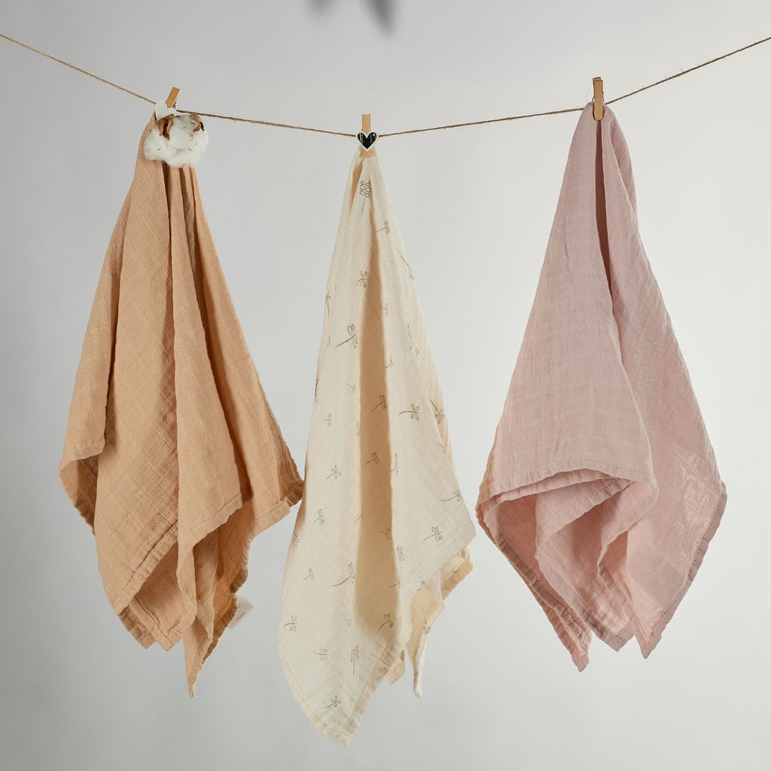 • Onino - muselina multifunctionala din bumbac 100% organic, hug.me, pure bloom, x3 bucati, 60 x 60 cm, certificata gots bbbcdsw007