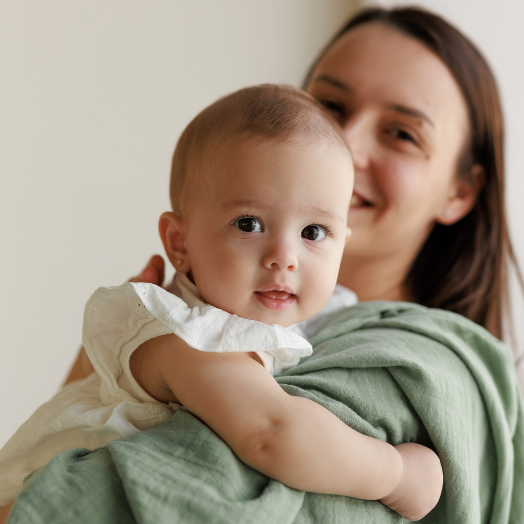 • Onino - muselina multifunctionala din bumbac 100% organic, hug.me, serene green, x1 bucata, 120 x 120 cm, certificata gots bbbcdsw004