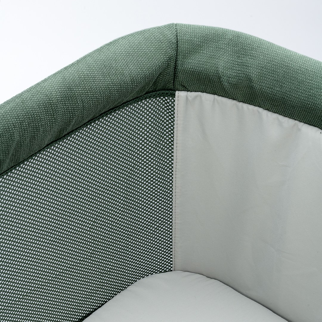 Lateralele din plasa respirabila si salteaua ferma ofera un mediu confortabil si bine ventilat, in timp ce patutul sustine bebelusi pana la 9 kg — siguranta si liniste in fiecare noapte.