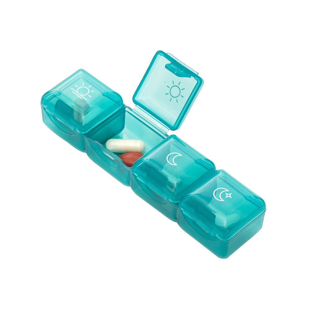 Organizator pentru medicamente Vitammy Pilla 1 x 4, cu 4 compartimente, design compact si portabil Rutina de administrare a medicamentelor devine mai simpla si mai clara cu Vitammy Pilla 1x4 , un organizator compact si practic, gandit pentru intreaga zi. Acest model este ideal pentru persoanele care au nevoie sa isi planifice cu precizie tratamentul zilnic, dar si pentru cei care cauta un accesoriu mic si usor de luat oriunde. Organizare pe momente ale zilei Organizatorul dispune de 4 compartimente separate , fiecare corespunzand unui moment important al zilei: dimineata, pranz, seara si noapte. Astfel, pastilele, suplimentele sau vitaminele pot fi impartite clar, fara riscul incurcarii dozelor. Este o solutie ideala pentru persoanele care urmeaza tratamente complexe si au nevoie de un sistem simplu si intuitiv. Beneficii: - 4 compartimente pentru organizarea dozelor zilnice (dimineata, pranz, seara, noapte) - Pictograme clare pentru recunoastere usoara - Material transparent , control rapid al continutului - Dimensiuni mici si greutate redusa , perfect pentru calatorii si utilizare zilnica - Inchidere sigura si deschidere facila - Design modern si practic Pictograme clare si intuitive Fiecare compartiment este marcat cu simboluri vizuale usor de recunoscut , ceea ce face utilizarea mai comoda pentru copii, seniori sau persoane cu vedere slabita. Pictogramele intuitive elimina nevoia de a citi textul si permit identificarea rapida a dozei corecte pentru momentul zilei. Compact si portabil Vitammy Pilla 1x4 este mic si usor, ceea ce il face extrem de practic pentru utilizarea zilnica. Se potriveste perfect in buzunar, poseta sau chiar intr-o trusa de cosmetice. Este companionul ideal in calatorii, la serviciu sau in zilele pline, cand ai nevoie sa ai medicamentele aproape in orice situatie. Design practic si modern Fabricat din material transparent , organizatorul permite verificarea rapida a continutului fara a fi nevoie sa il deschizi. Inchiderea este sigura, protejand pastilele in timpul transportului, dar in acelasi timp usor de utilizat pentru acces imediat. Calitatea superioara a executiei garanteaza rezistenta si functionalitate indelungata. Vitammy Pilla 1x4 nu este doar un simplu recipient, ci un instrument de incredere care aduce ordine, claritate si siguranta in administrarea tratamentelor zilnice.,
