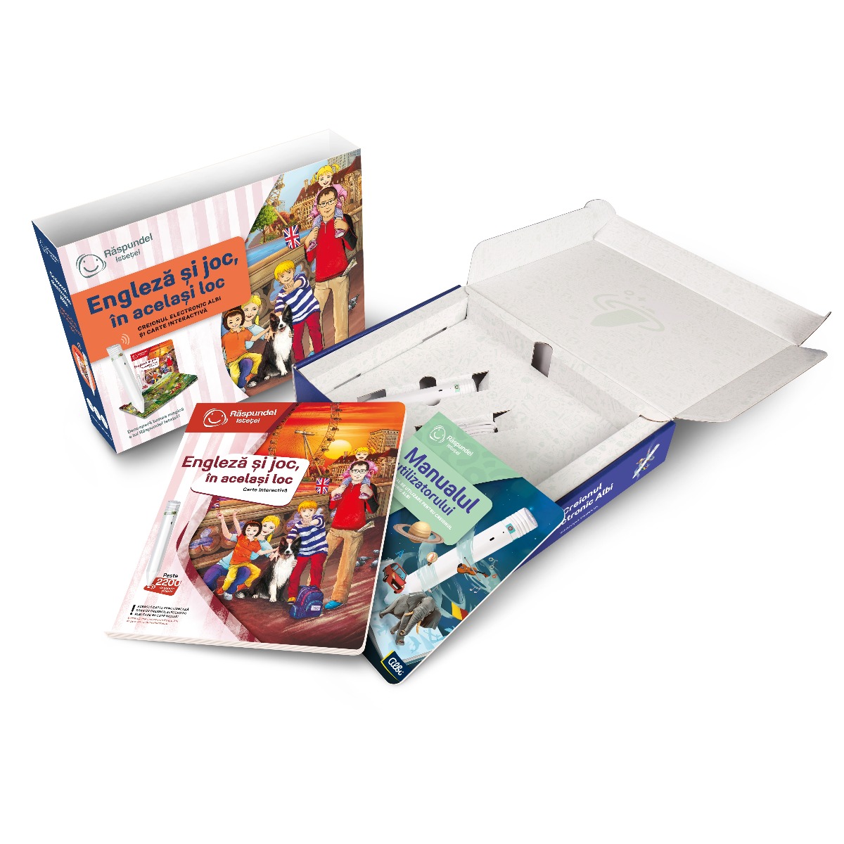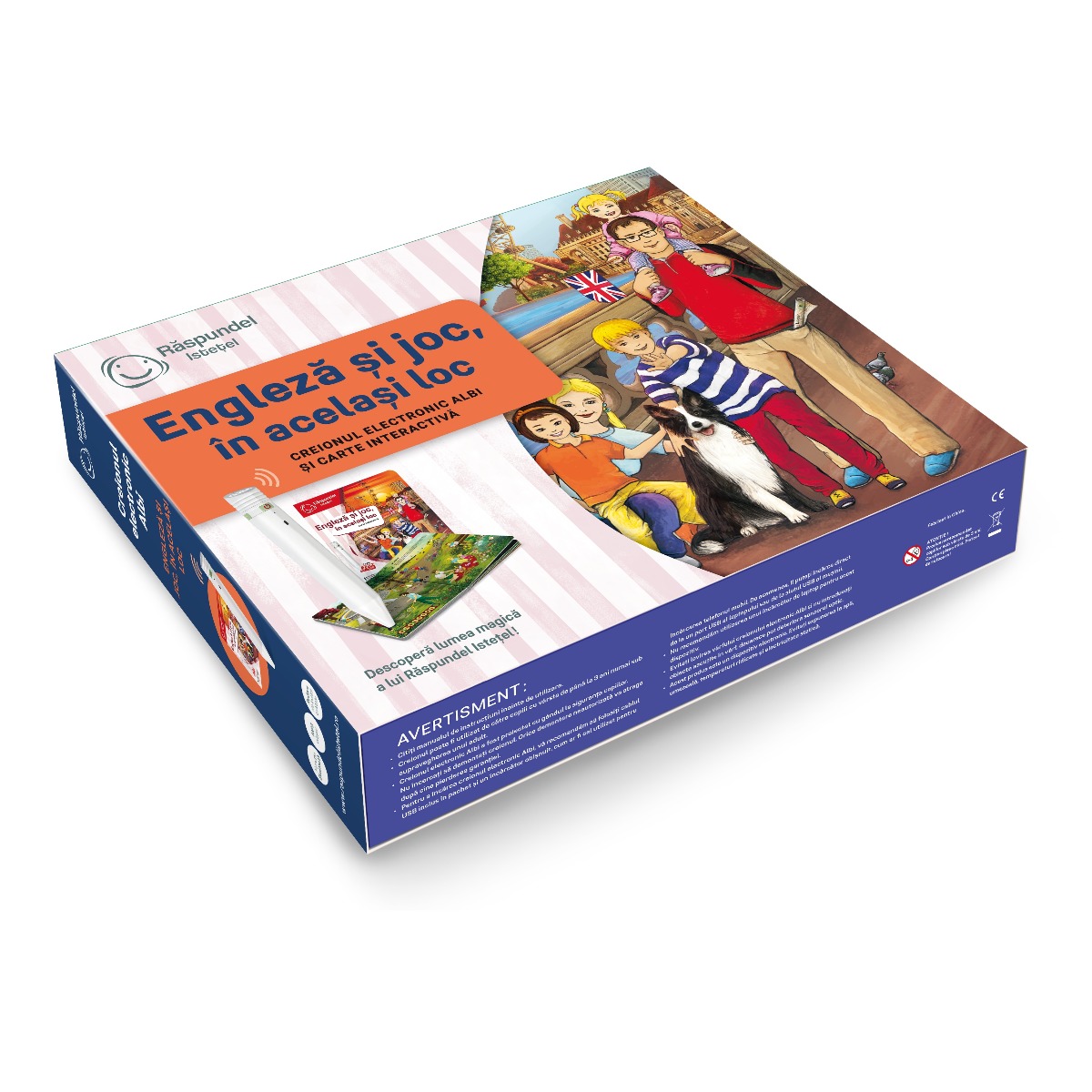 Pachetul contine creionul vorbitor ALBI si cartea Engleza si joc, in acelasi loc. Aceasta carte este perfecta pentru a invata limba engleza daca sunteti incepator sau intermediar. In mod distractiv, va veti mari vocabularul si veti invata cum sa pronuntati in mod corect cuvintele in limba engleza si propozitiile simple. Cartea este narata de vorbitori nativi dar include si traducerea in limba romana. Va puteti testa cunostintele acumulate prin intermediul chestionarelor, care sunt impartite in trei categorii de dificultate. Varsta recomandata: 6+ ani.
