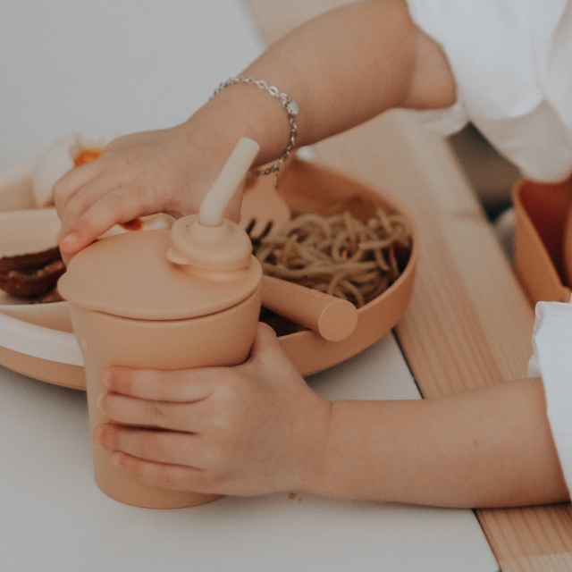Acest produs Pahar cu capac si pai antrenament bebelusi Miniware 1-2-3 Sip!, 100% din materiale naturale biodegradabile, Toffee este model mw_MWSCTT