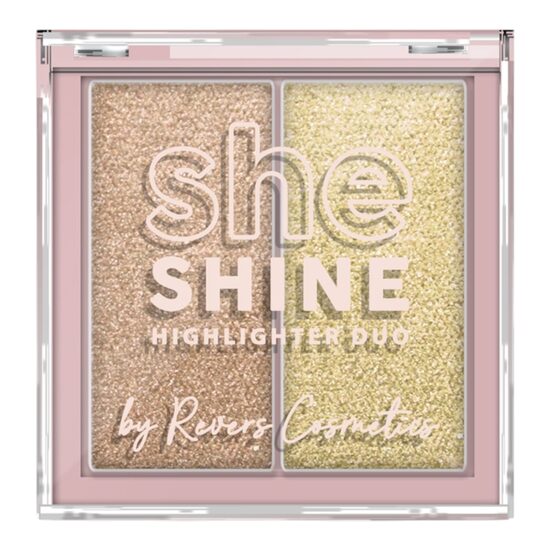 ✨ Căldura soarelui transpusă pe piele. Paleta iluminator duo Revers SHE SHINE 01 Desert Beam reunește două nuanțe aurii calde, ce oferă pielii un glow solar, radiant și elegant. Ideală pentru machiaje de zi luminoase sau look-uri bronzate cu reflexe intense.