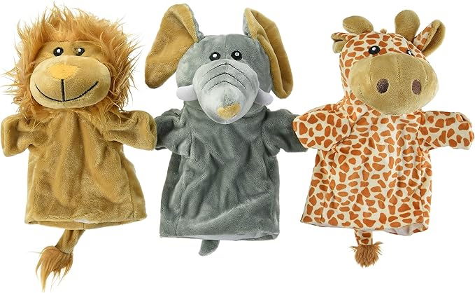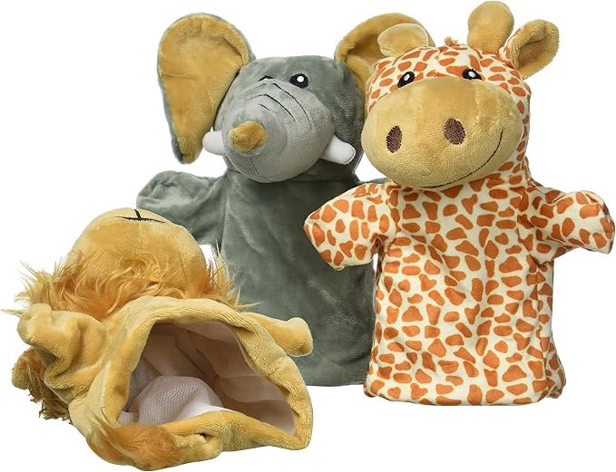• Papusi de teatru pentru copii, de mana, girafa-leu-elefant, 1 an+, set 3 buc, goki