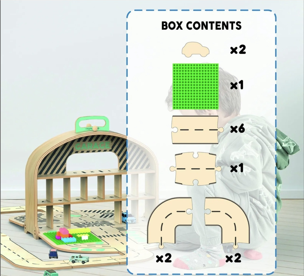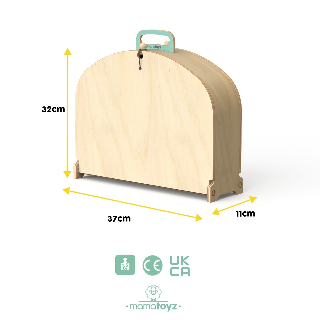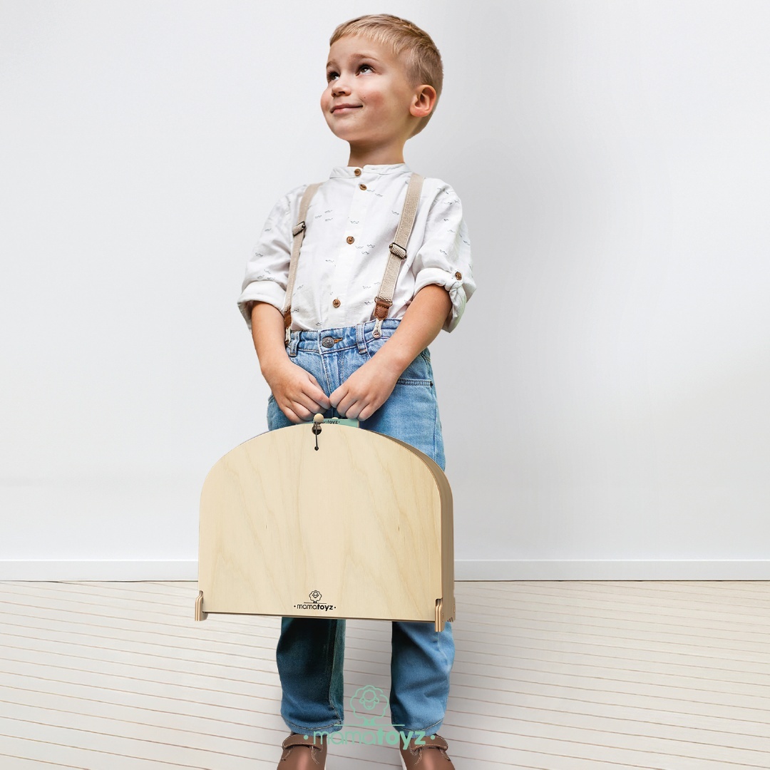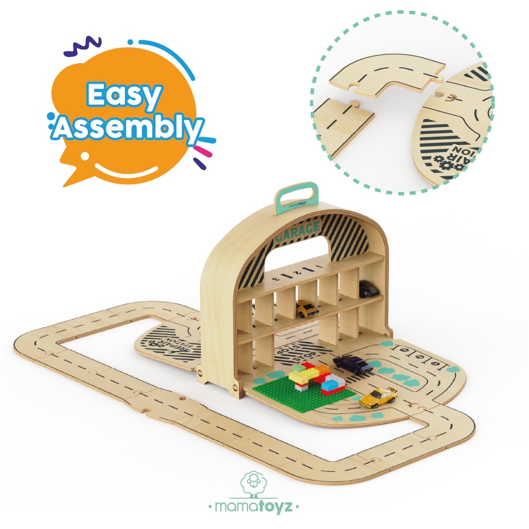 Parcarea portabila de masinute din lemn, MamaToyz nu este doar o jucărie – este o lume a imaginației împachetată într-un geamantan stilat și portabil. Odată deschis, se transformă într-o pistă de mașini palpitantă, cu piese modulare și conectabile care le permit copiilor să-și creeze și extindă spațiul de joacă așa cum își doresc. Când joaca se termină, aceasta se pliază într-un garaj ordonat pentru mașinuțe.