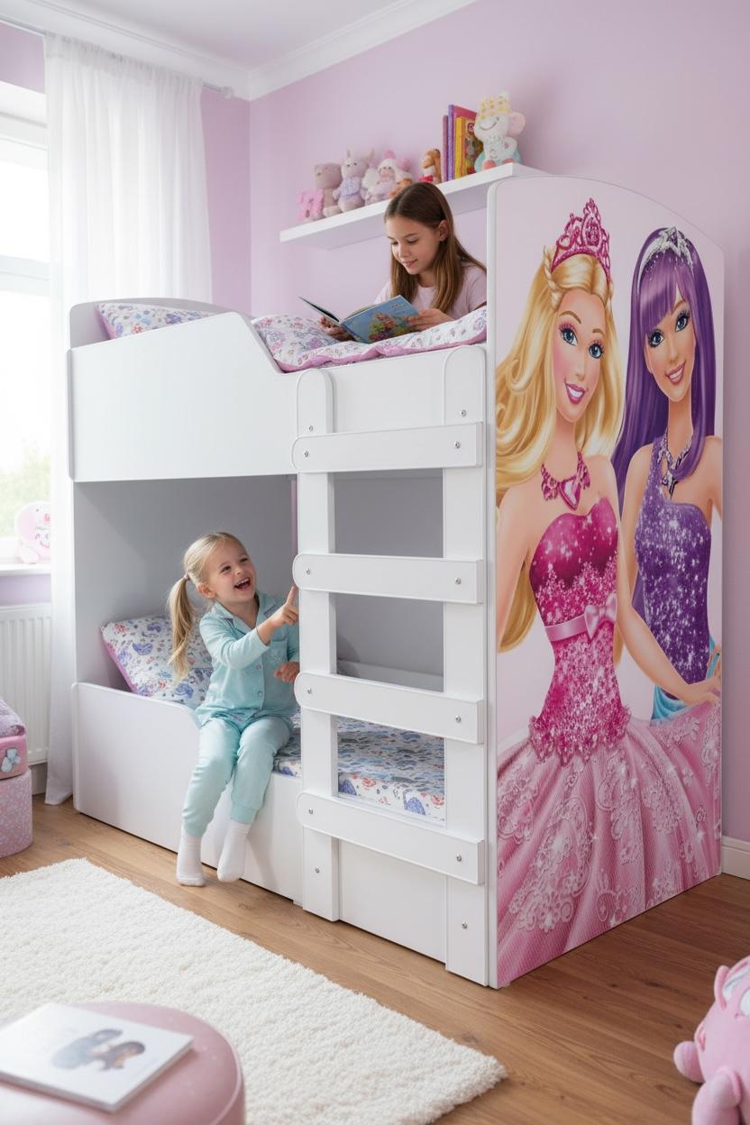 Pat Barbie pentru 2 copii, suprapus, dimensiune 160x80 cm Ptv8521