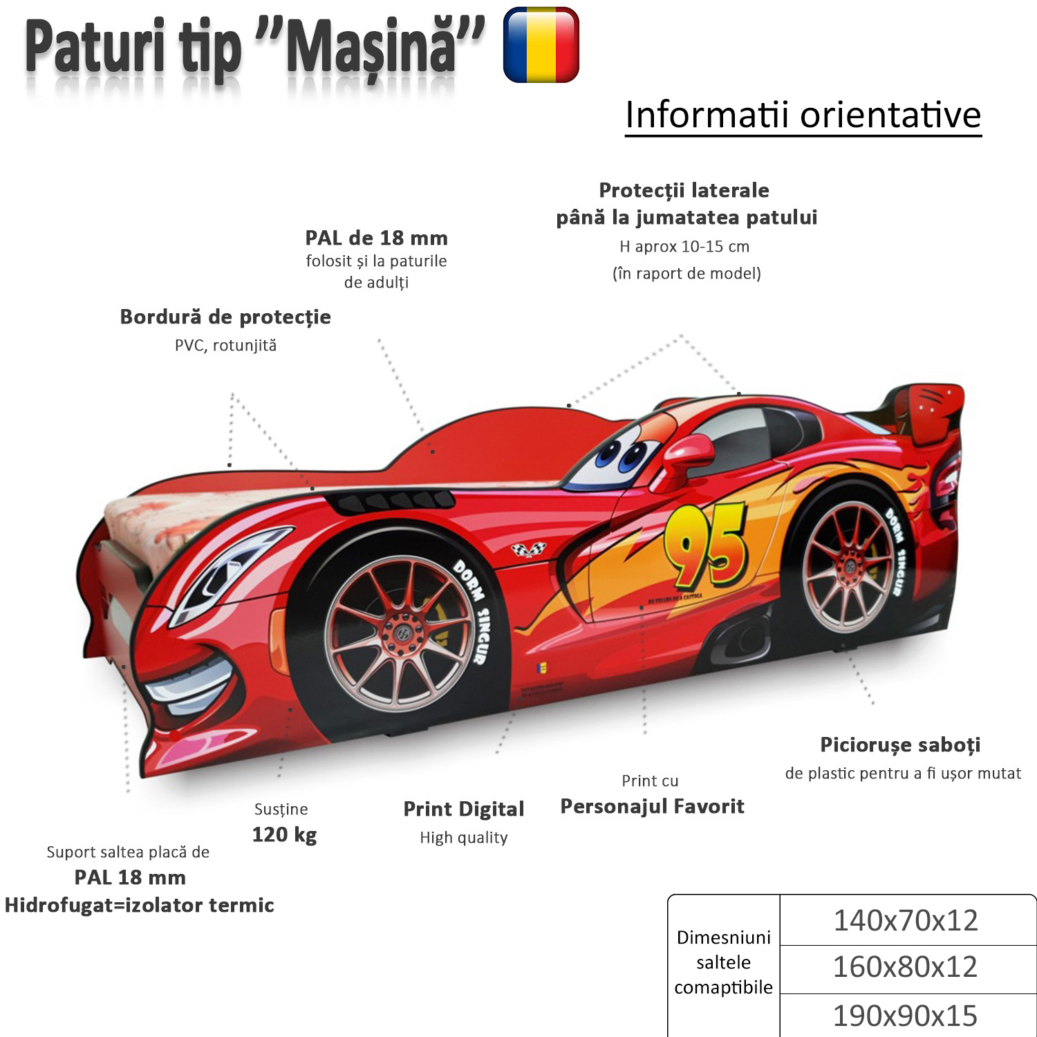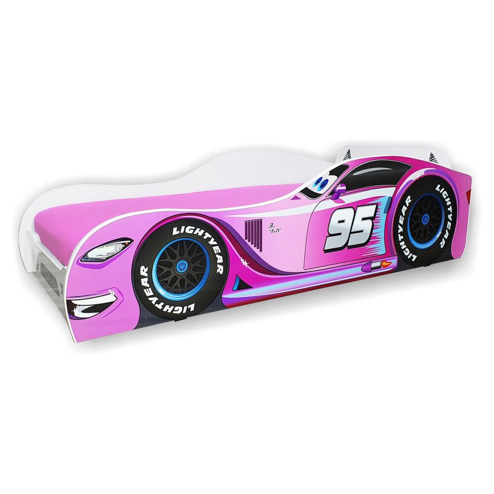 Pat tip masina Speed X1 pentru fetite de 2-8 ani, varianta cu saltea SafeNest 140x70x6 cm inclusa
