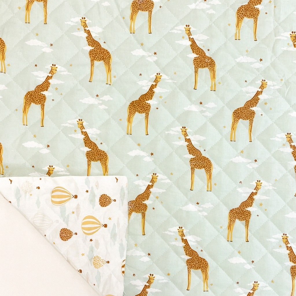 • Paturica Bebelus Handmade Matlasata Din Bumbac Premium Cu Fata Dubla , Giraffe Head In Clouds, 135x100 Cm Pjb87662