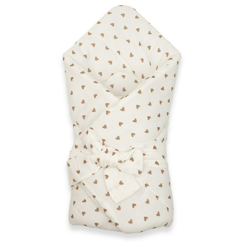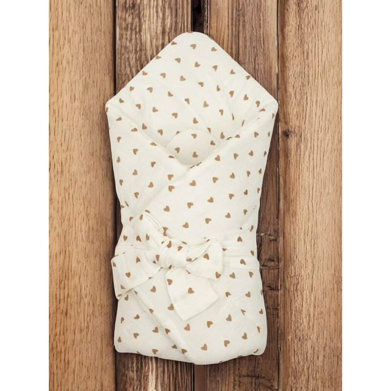 ❤️Paturica de infasat Qmini, 75x75 cm, Muselina dubla, Cu panglica, Cream