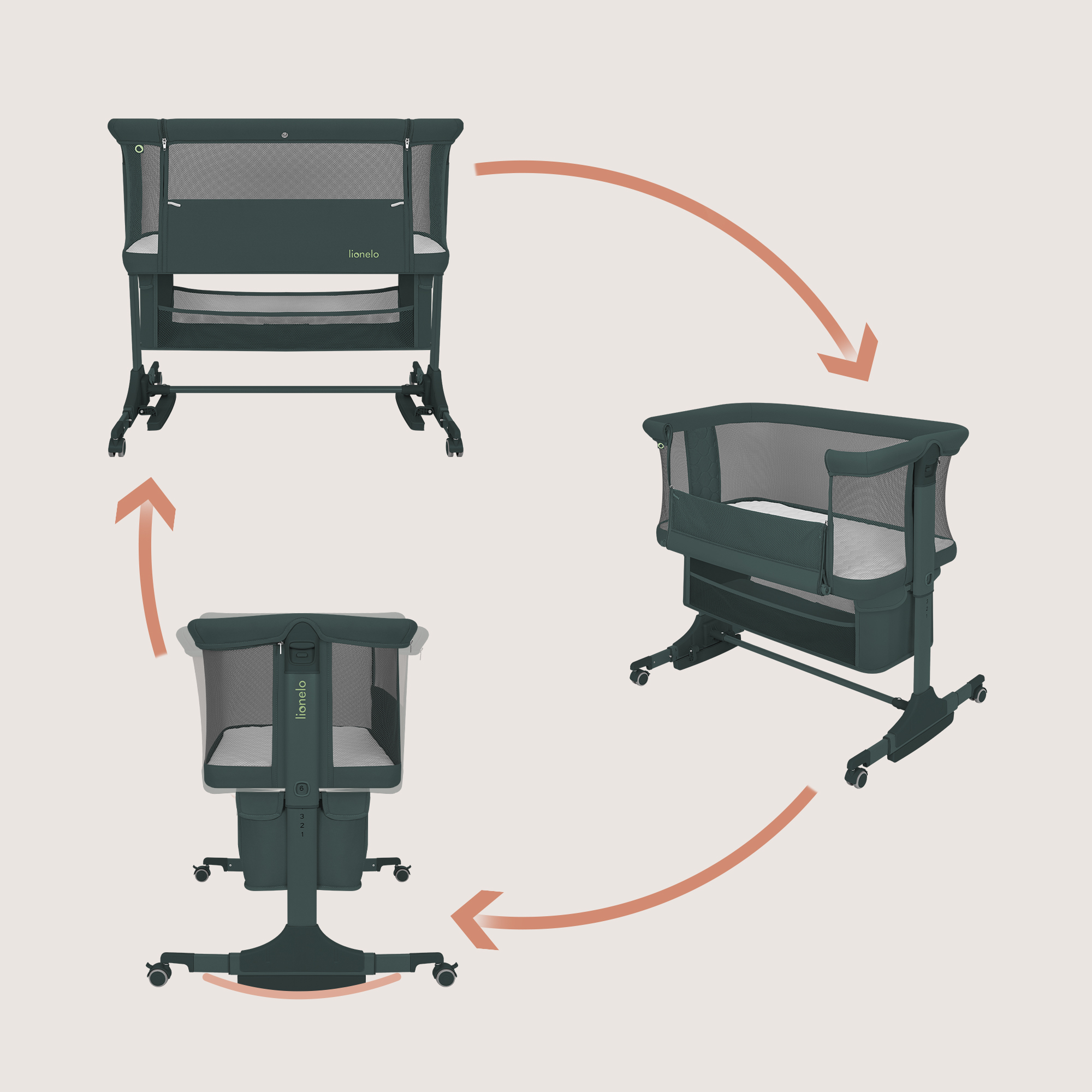 Lionelo Jodie se adapteaza perfect rutinei zilnice. Noaptea il folosesti atasat de pat, ziua ca patut independent, iar atunci cand copilul are nevoie de linistire, il transformi rapid in leagan.