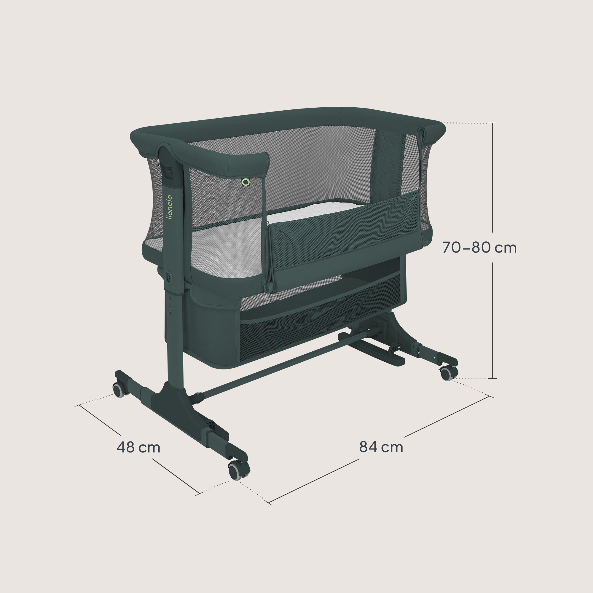 Ultima actualizare a informațiilor de prezentare pentru Patut co-sleeper, Lionelo, Jodie, Multifunctional, Reglabil in 6 pozitii pe inaltime, Saltea cu densitate T25, Functie de leganare, Cu plasa de tantari, Buzunar depozitare, Geanta transport, 84x48x70-80 cm, Verde inchis BYNLO-JODIE_GREEN_GRAPHITE a fost efectuată la data de 27.04.2026