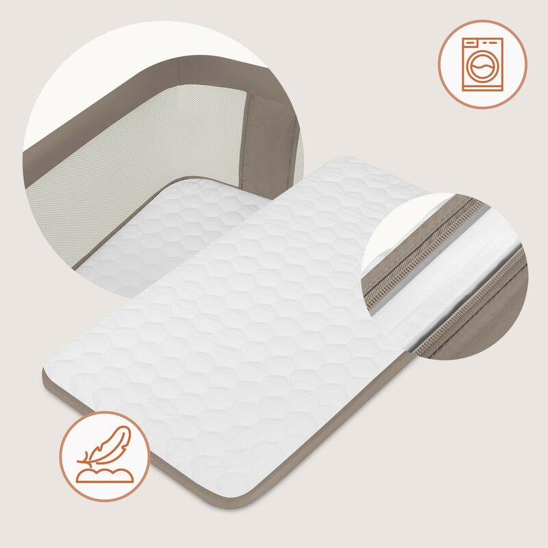 Patutul are 6 niveluri de reglare, fiind compatibil chiar si cu paturi mai inalte. Astfel, puteti aseza si ridica bebelusul fara efort.