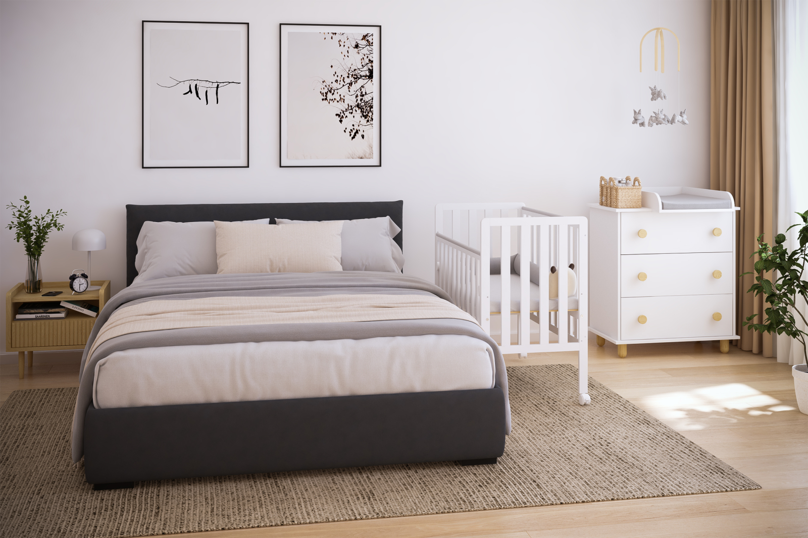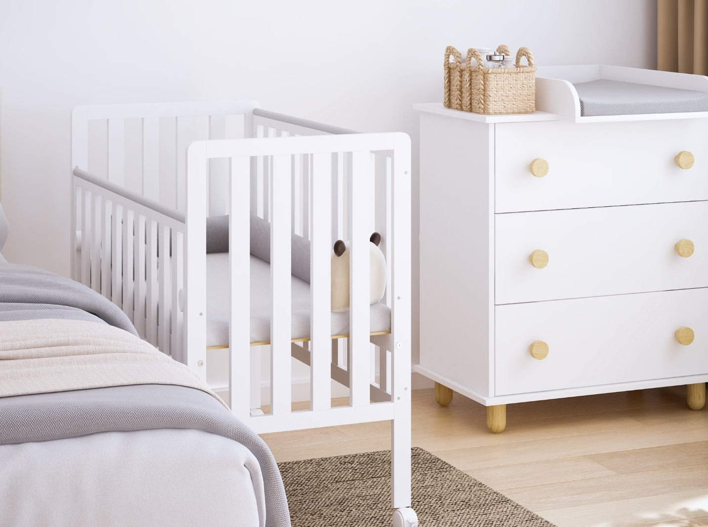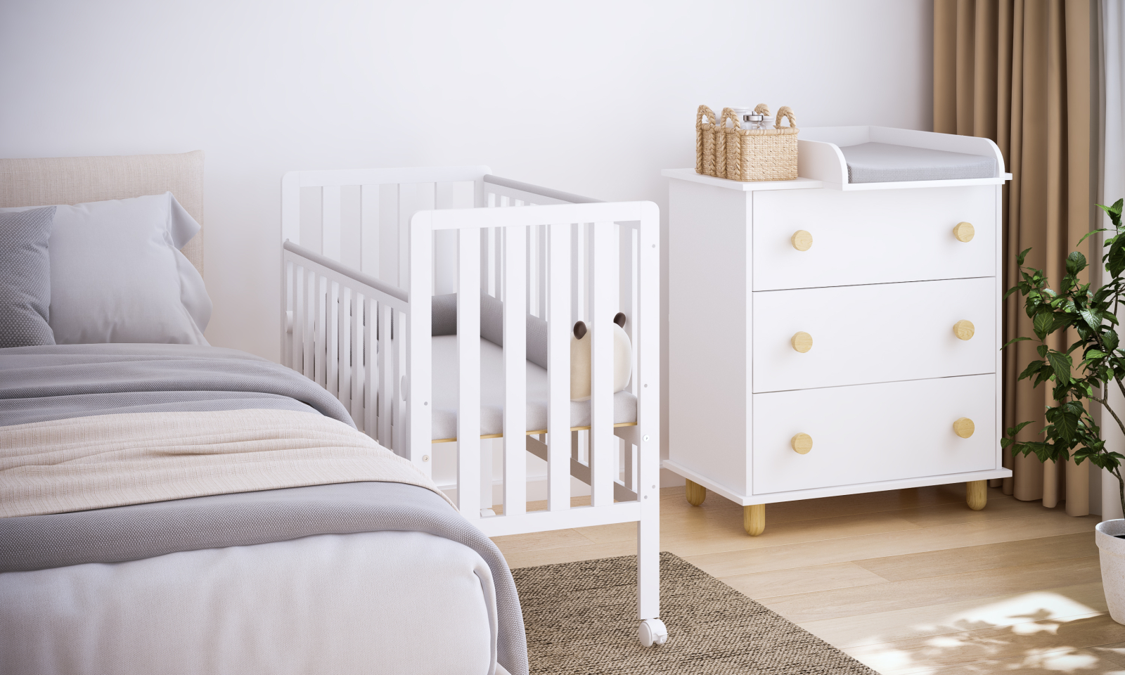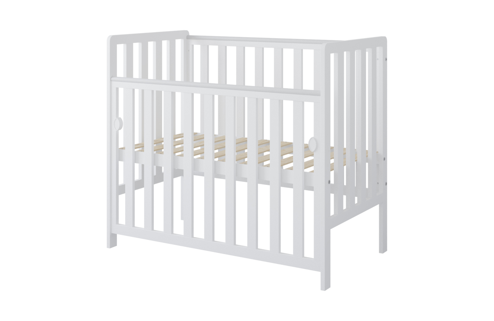 Tu vrei un patut sigur, practic si frumos. Patutul pentru bebelusi BAMBI 100Ãmdash;50 cm iti ofera exact acest echilibru. Construit din MDF de calitate superioara si placaj din lemn masiv , patutul asigura stabilitate, durabilitate si utilizare zilnica fara griji. Laterala culisanta iti permite sa ajungi usor la copil, iar rotile cu frane iti ofera flexibilitate in organizarea camerei. Protectia din silicon pentru dentitie ajuta in perioada eruptiilor dentare si protejeaza cadrul patutului. Designul modern, cu margini rotunjite , se integreaza perfect in orice camera de copil. Este o alegere sigura, certificata si gandita pentru nevoile reale ale parintilor. Ce include oferta Patut pat suplimentar BAMBI 100Ãmdash;50 cm , culoare Alb Cadru din placaj de lemn masiv Protectie silicon pentru dentitie pe doua laturi lungi Roti cu frane (instalare optionala) Salteaua nu este inclusa. Functii si caracteristici tehnice Respecta standardul european EN 716-1 Material: MDF + placaj din lemn masiv (esenta tare, pin) 3 niveluri de reglare a somierei Spatii intre lamele pentru circulatia aerului si igiena saltelei Vopsele si materiale sigure pentru copii Fara capace cu filet , elimina riscul de sufocare Usor de intretinut si curatat Design simplu si versatil Niveluri de reglare somiera Nivel 1 , 53 cm Recomandat de la nastere pana cand copilul poate sta in sezut Nivel 2 , 39 cm Recomandat din sezut pana la ridicarea in picioare Nivel 3 , 26,5 cm Recomandat cand copilul se ridica singur Dimensiuni si greutate Dimensiuni produs: 104 Ãmdash; 56 Ãmdash; 90 cm Dimensiune saltea compatibila: 100 Ãmdash; 50 cm Greutate: 13 kg La MagicKids selectam produse care respecta standarde stricte de siguranta si calitate. Folosim doar materiale certificate, non-toxice, pentru un mediu sanatos inca din primele zile de viata. Alege un patut sigur, practic si elegant. Adauga in cos si creeaza un spatiu linistit pentru copilul tau.