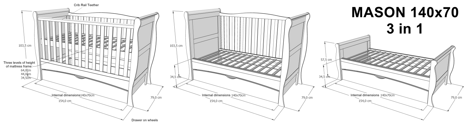 Ultima actualizare a informațiilor de prezentare pentru Patut Evolutiv 140x70 Cm Serenity 3in1 , Pat Bebe + Junior + Pat Prescolar, Somiera Reglabila Pjbmason140_w a fost efectuată la data de 05.02.2026