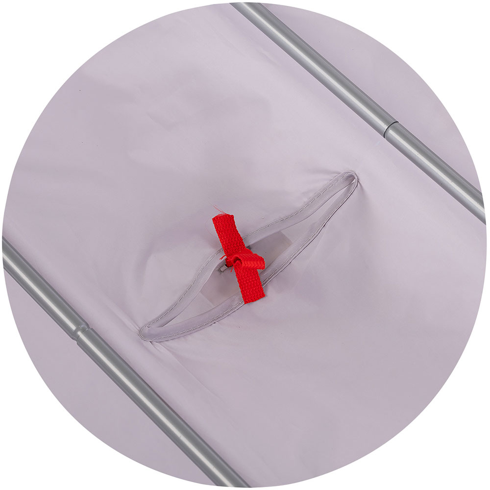 • Patutul este echipat cu un mecanism usor de pliat cu o singura mana. Dupa ce trageti in sus manerul din centrul inferior al patutului, toate cele 4 laturi se pliaza impreuna, ceea ce face ca plierea patutului sa fie foarte usoara pentru transport sau depozitare