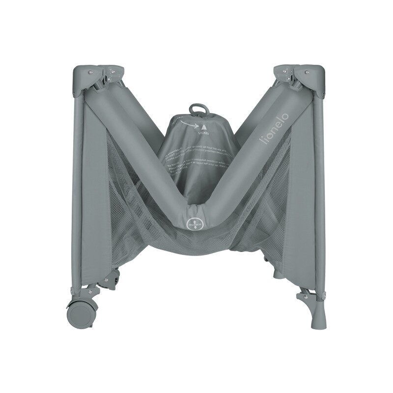 Patutul Lionelo Amelie se pliaza usor, iar odata pliat ocupa foarte putin spatiu – aproximativ 19,5 x 19,5 x 71 cm. Poate fi depozitat simplu in dulap, in portbagaj sau intr-un colt al camerei.