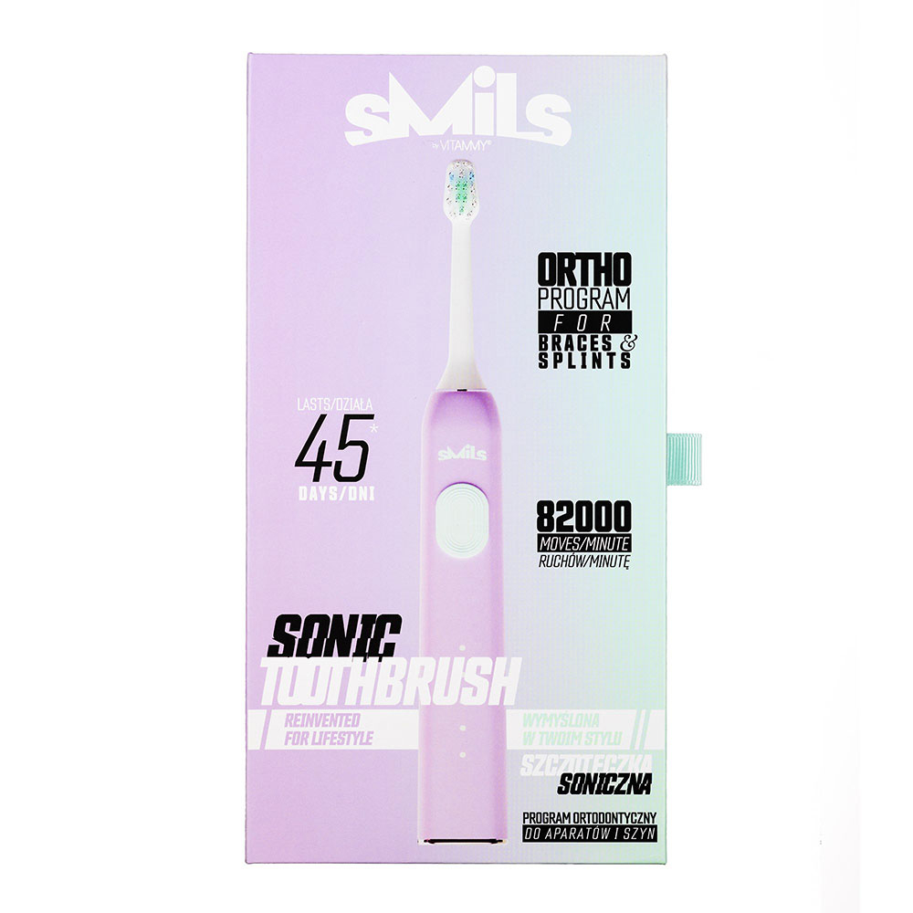 Periuta de dinti electrica Vitammy Smils Jelly, 82.000 de miscari min, 5 programe de periaj, baza incarcare USB, 2 capete periuta, Violet Iti traiesti pasiunea? Vitammy Smils este o periuta de dinti inventata in stilul tau. Periuta de dinti electrica Vitammy Smils a fost conceputa pentru tineri. Aspectul retro-futurist, cea mai inalta calitate si cele 5 programe de periaj ajuta la ingrijirea dintilor, ofera un aspect sanatos si dinti albi. Caracteristici: - De la 62.000 la 82.000 de miscari sonice pe minut; - Cea mai eficienta miscare a capului de periuta; - Decolorarea treptata a fibrelor capului de periuta indica gradul de uzura; - 5 programe de periaj; - Pana la 45 de zile cu o singura incarcare; - Functia de control a presiunii; - Temporizator - individual pentru fiecare program; - Buton mare de pornire oprire; - Baza de incarcare USB; - Ambalaj deosebit, de inalta calitate, perfect pentru un cadou. Un program care are grija de curatarea aparatelor ortodontice Aparatele ortodontice necesita o atentie deosebila si sporita. Cu periuta de dinti electrica Vitammy Smils este mai usor ca niciodata. Datorita unui program special iti poti curata rapid si eficient dintii dupa fiecare masa. Baza de incarcare mereu la indemana O baza mare, stabila, cu incarcare USB pentru depozitare convenabila si in siguranta a periutei de dinti. Presiunea perfecta Functia de control a presiunii, care, afisand o lumina rosie in baza, te avertizeaza daca presiunea periutei de dinti asupra smaltului dentar este prea puternica. Cand sa schimb capul de periuta? Fibrele capului de periuta decolorate treptat indica gradul de uzura si necesitatea schimbarii capului. Spala-te pe dinti chiar daca nu ai deschis inca ochii Un buton mare din silicon o face usor de utilizat. Chiar si sub dus, poti schimba cu usurinta modul de periere. Programe de periaj pentru tine si rutina ta zilnica Am dat programelor de periaj un nou sens si un nou rol. Periuta de dinti electrica Vitammy Smils are pana la 5 programe unice de periaj: Buna dimineata - 2 minute pentru a te trezi. Din ce in ce mai multe vibratii. Programul consta in 4 cicluri de 30 de secunde si 64.000 de miscari pe minut ; Noapte buna - Program mai lung, linistitor, cu mai putine vibratii ( 6x 30 secunde) si 62.000 de miscari pe minut ; Cenusareasa - Te reimprospatezi 1 minut atunci cand trebuie sa faci miscare. Inteligent! 4 x 15 secunde si 62.000 de miscari pe minut ; Aparate dentare - Curatare sonica usoara a aparatelor dentare de 1 minut cu 82.000 de miscari pe minut, fara pauze ; Albirea - 2 minute de albire sigura, urmata de un masaj 2 x 30 secunde cu 82.000 de miscari pe minut + 1 minut de masaj puls cu 62.000 miscari pe minut. Vitammy Smils este intotdeauna periuta de care ai nevoie. Periuta de dinti isi va aminti modul selectat si cu acesta incepe urmatoarea spalare. Doresti sa schimbi cu usurinta programele in timp ce periuta de dinti functioneaza? Continua sa apesi butonul I O si modul de lucru se va schimba in urmatoarea ordine: 1. Buna dimineata; 2. Noapte buna; 3. Cenusareasa; 4. Aparate dentare; 5. Albire. Ce regasesti in pachet: - Periuta de dinti electrica Vitammy Smils Jelly violet; - 2 capete de periuta; - 1 baza de incarcare USB; - Manual de utilizare.,
