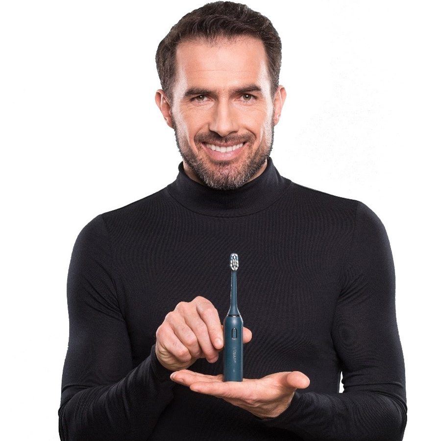 Periuta de dinti electrica VITAMMY Vivo, model premium, 72000 vibratii min, 3 moduri de periaj, rezistenta la apa, Antracit Periuta Vitammy Vivo este o periuta de dinti electrica, care impresioneaza prin stilul sau elegant, cu finisaje de calitate si tehnologie avansata de curatare. Aceasta a fost creata cu mare atentie la fiecare detaliu. Periuta de dinti electrica Vitammy Vivo combina suprafata satinata a manerului cu elemente metalice decorative. Aceasta nu doar curata bine dintii, dar este si un element de design cu bun gust in orice baie. Caracteristici : - Model premium; - Carcasa compacta pentru depozitare; - Numar de miscari min: 72 000; - Numaratoare inversa pentru 4 zone de spalare; - Oprire automata dupa 2 minute; - Vibratii sonice; - Functionare silentioasa (65 dB) si reducerea vibratiilor carcasei; - Rezistenta la apa; - Suport de incarcare USB; - 3 moduri de periaj; - Eficienta ridicata; - Indicator baterie descarcata; - 1 capat periuta. Utilizarea sistematica a periutei Vitammy Vivo garanteaza: - Indepartarea minutioasa a placii bacteriene; - Reducerea decolorarii; - Gingii mai sanatoase. Cu periuta electrica de dinti VITAMMY Vivo obtineti o ingrijire profesionala a intregii cavitati bucale chiar la voi acasa. Puteti avea grija de dinti, limba si gingii printr-o singura spalare. Designul este conceput special pentru a diminua sunetul vibratiilor si a oferi o utilizare linistita ( 65 dB). Acest lucru reduce disconfortul cauzat in general de periutele de dinti sonice. Capul de periere si manerul formeaza echipa perfecta. Perfectionand tehnologia sonica, aceasta periuta va ofera o curatare inegalabila. Vibratiile la viteza ridicata din manerul periutei de dinti asigura 72 000 de miscari de periere pe minut, transformand pasta de dinti intr-o spuma pentru curatare delicata si care patrunde adanc in spatiile interdentare si de-a lungul gingiei, pentru o curatare exceptionala. 72 000 MISCARI PE MINUT Vibratiile la viteza ridicata din manerul periutei de dinti asigura 72 000 de vibratii sonice pe minut, transformand pasta de dinti intr-o spuma pentru curatare delicata si care patrunde adanc in spatiile interdentare si de-a lungul gingiei, pentru o curatare exceptionala. 3 MODURI DE PERIAJ Clean - pentru o curatare zilnica exceptionala. White - pentru a indeparta petele si a inalbi dintii. Sensitive - pentru curatarea delicata a gingiilor sensibile. Este recomandat in special persoanelor cu sangerari gingivale. 20 ZILE CU O SINGURA INCARCARE Atunci cand utilizati periuta de doua ori pe zi, timp de 2 minute, acesta poate functiona pana la 20 de zile cu o singura incarcare. DE DOUA ORI MAI EFICIENTA Datorita modelului nou si tehnologiei sonice avansate, eficienta periutei este dubla fata de alte modele similare. Curata perfect si albeste dintii. In acelasi timp, este mult mai eficienta in combaterea placii bacteriene datorita intensitatii vibratiilor. DESIGN DEOSEBIT Forma revolutionara a ambalajului periutei ofera o protectie eficienta impotriva murdariei si a deteriorarii. Datorita dimensiunilor sale mici, o puteti lua in vacante, la serviciu, sau chiar la scoala. Aspectul sau aminteste de un gadget exclusivist la care veti ajunge cu mandrie dupa fiecare masa. ZGOMOT REDUS 65 dB Designul este conceput special pentru a diminua sunetul vibratiilor si a oferi o utilizare mai linistita ( 65 dB). Acest lucru reduce disconfortul cauzat in general de periutele de dinti sonice . REZISTENTA LA APA Rezistenta la apa va permite sa clatiti intreaga periuta dupa spalare, sau chiar sa o folositi sub dus. Vitammy Vivo - pentru cei ce isi doresc mai mult! Ai grija de tine si de mediu cu marca Vitammy . Forma unica si atent gandita a periei este o propunere inovatoare a marcii Vitammy, ale carei dispozitive indeplinesc standardele celor mai recente directive UE privind eficienta energetica. Pachetul contine : - 1 periuta de dinti electrica Vitammy Vivo; - 1 capat periuta; - 1 incarcator wireless; - 1 carcasa compacta pentru depozitare.,