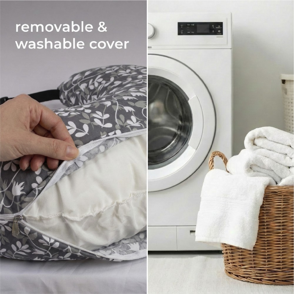 Husa detasabila, prevazuta cu fermoar, este usor de indepartat si lavabila la masina,100 % bumbac.
