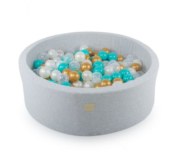 • Piscina Uscata Cu 250 De Bile (alb Perlat, Transparent, Auriu, Turcoaz) Meowbaby , Dreams, 90x30 Cm, Gri Deschis Pjbb001010