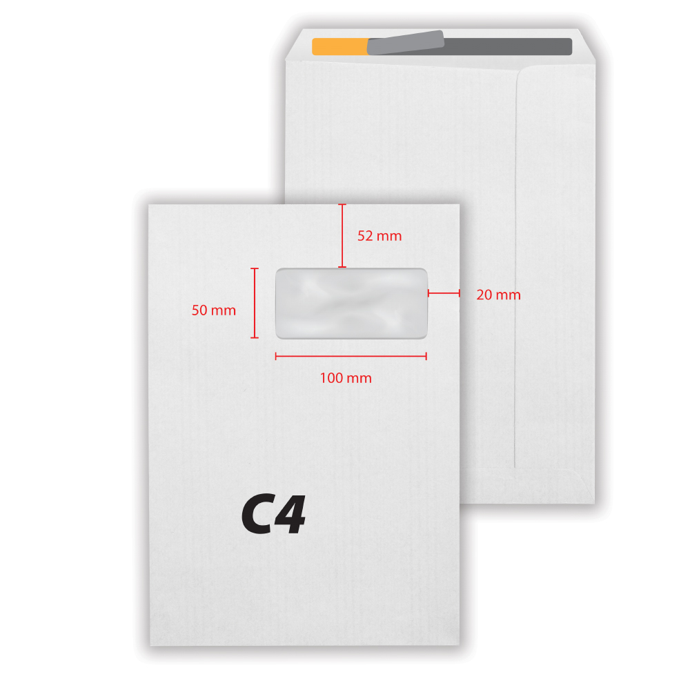 • Plic C4, 229 x 324 mm, fereastra dreapta 50 x 100 mm, alb, banda silicon, 80 g/mp, 250 bucati/cutie BPTCKF30355