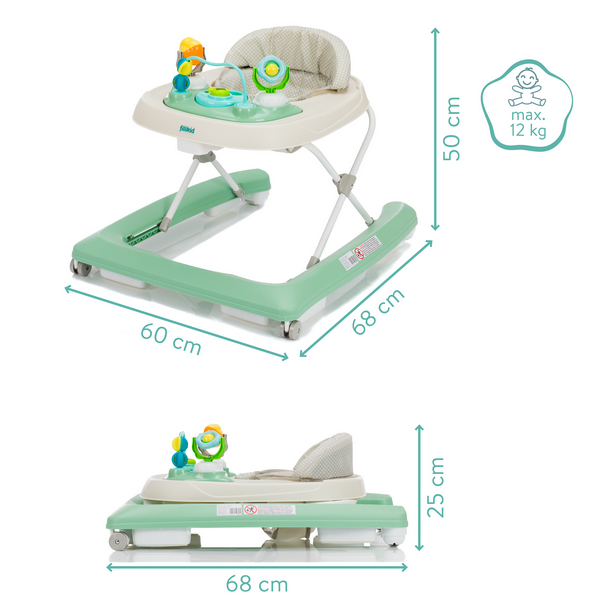 Premergatorul Fillikid este suportul perfect pentru primii pasi ai copilului dumneavoastra. Acesta combina siguranta, confortul și distractia într-un produs de înalta calitate. Cu cadrul sau robust ai designul bine gândit, ofera copilului dumneavoastra un mediu protejat în care poate învata să mearga într-un mod jucaus. Tabla de joaca integrată cu elemente de joaca colorate ofera varietate si promoveaza abilitatile motorii într-un mod jucaus. Datorita pozitiei scaunului reglabile pe înăltime, premergătorul creste odata cu copilul dumneavoastra si sustine o postura ergonomica. Sistemul de pliere care economiseste spatiu este deosebit de practic, permitand depozitarea sau transportul rapid si usor al premergatorului - perfect pentru utilizare flexibila acasa sau în deplasare. Un alt punct forte este opritorul de siguranta, care protejeaza în mod fiabil copilul dumneavoastra de caderile pe scari si ofera astfel siguranta suplimentara. Acest premergator combina functionalitatea si siguranta într-un design modern si va deveni rapid un ajutor indispensabil pentru primii pasi ai copilului dumneavoastra. Siguranta copilului dumneavoastra este prioritatea noastră principala. Opritoarele integrate pentru scari asigura siguranta maxima. Premergatorul este potrivit pentru copiii de la sase luni si poate sustine o greutate de pâna la 12 kg. Este fabricat din plastic robust, asigurând durabilitate si stabilitate. Sezutul detasabil, cu captuseala moale, și elementul de joaca multifuncțional sunt alte caracteristici care fac acest premergător special. Împreuna, aceste caracteristici ofera o combinatie armonioasa de distractie, siguranta si sprijin pentru învațare pentru copilul dumneavoastra. Caracteristici produs: Premergător reglabil pe înaltime Tava de joaca integrata Promoveaza abilitatile motorii si coordonarea prin joc. Mecanism practic de pliere Opritor de siguranta Scaun confortabil pentru suport ergonomic Dimensiuni compacte: 65 × 62 × 60 cm