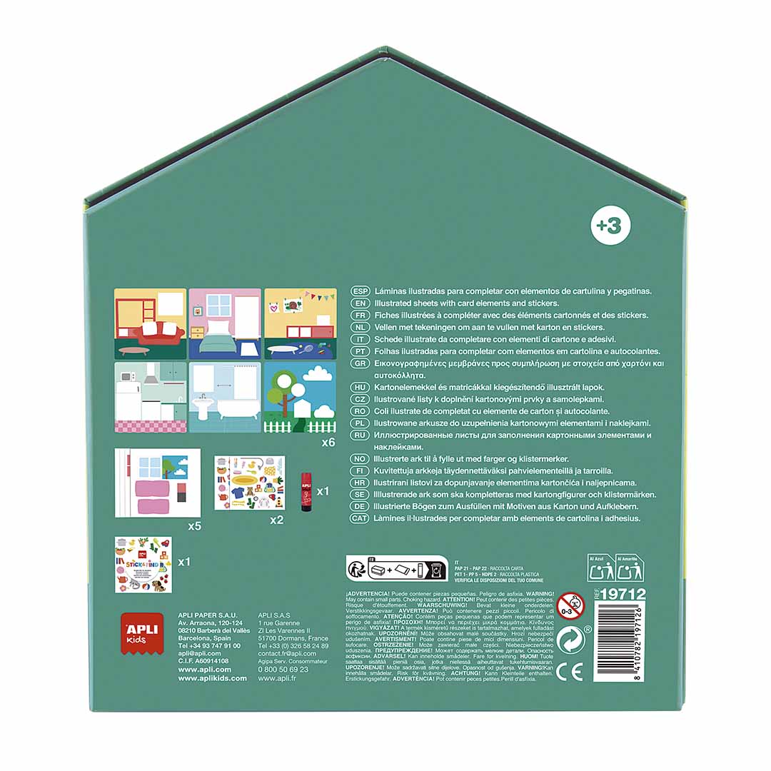 Set de lucru manual din colectia My First cu tematica de casa. Jocul consta in plierea si lipirea elementelor de carton pe diferite coli cu ilustratii de casa si decorarea lor cu stickere cu aceeasi tema. Include 6 coli ilustrate, 5 coli pre-decupate, 2 coli de stickere, 1 stick de lipici de 20 g si 1 carte cu instructiuni si exemple despre cum se realizeaza activitatea. Acest produs are o valoare educationala ridicata, perfect pentru dezvoltarea dexteritatii si preciziei de la o varsta frageda, precum si pentru stimularea motricitatii fine, lucrul la coordonarea mana-ochi, promovarea orientarii spatiale si dezvoltarea creativitatii. Recomandat copiilor cu varsta de 3 ani si peste.