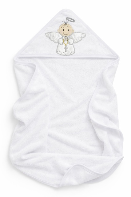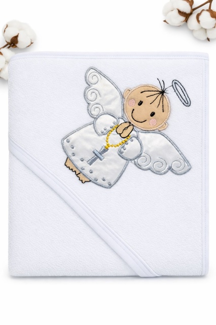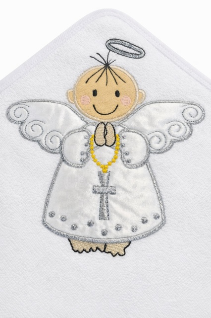 Acest produs Prosop bebe alb cu gluga pentru botez bumbac moale broderie ingeras este model TRPB0169