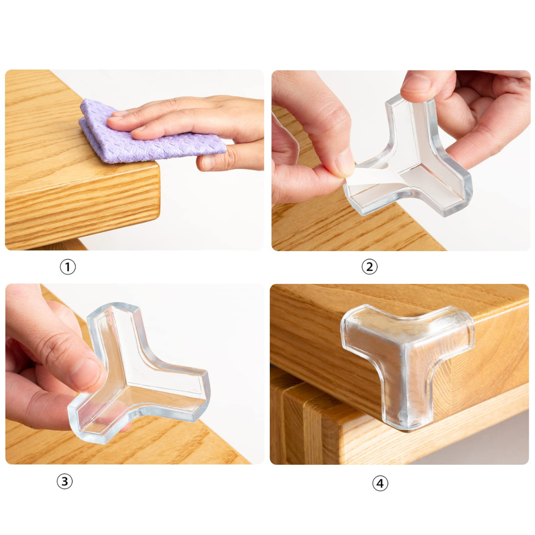 • Protectie colturi mobila, trei laturi, transparent, 4 buc